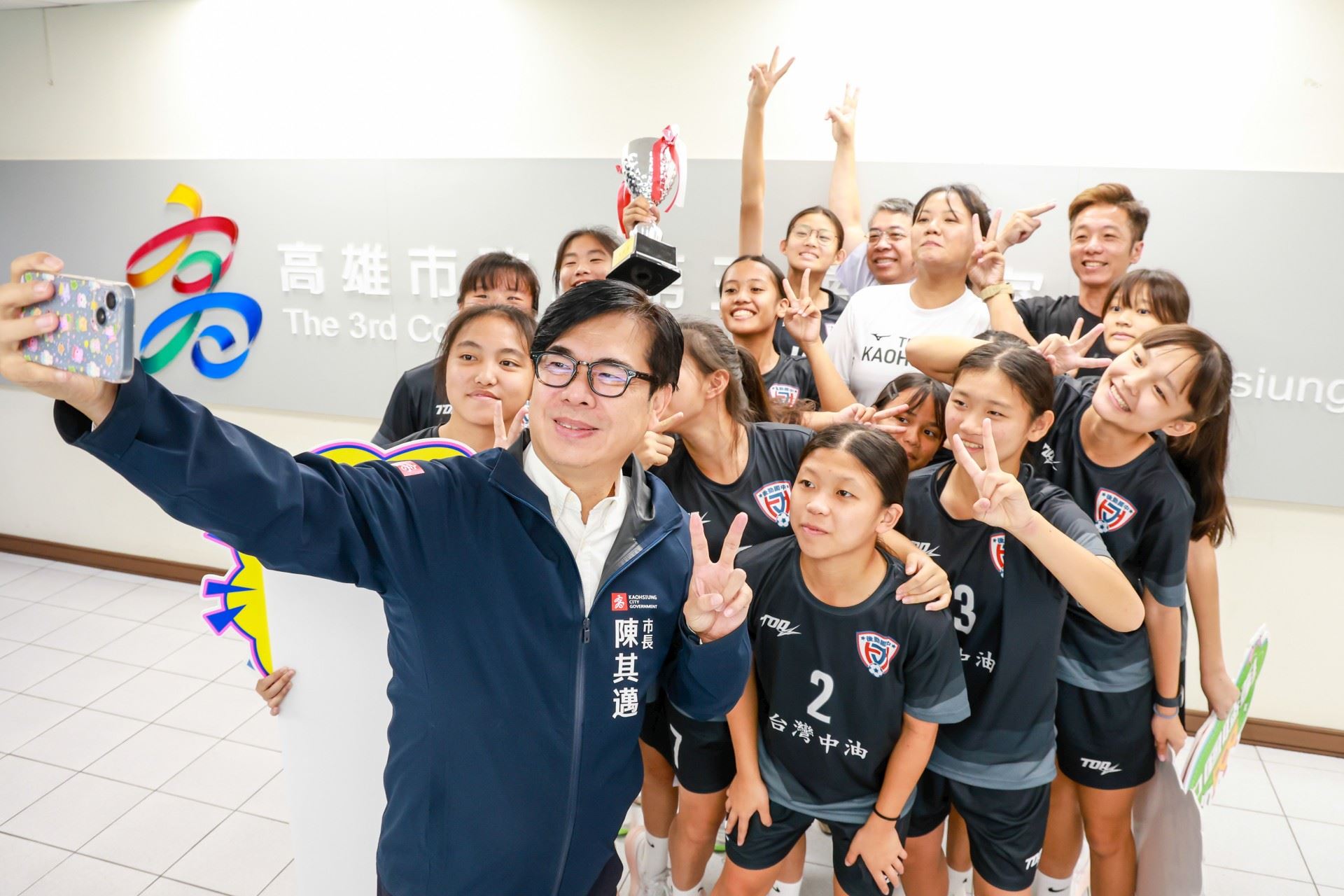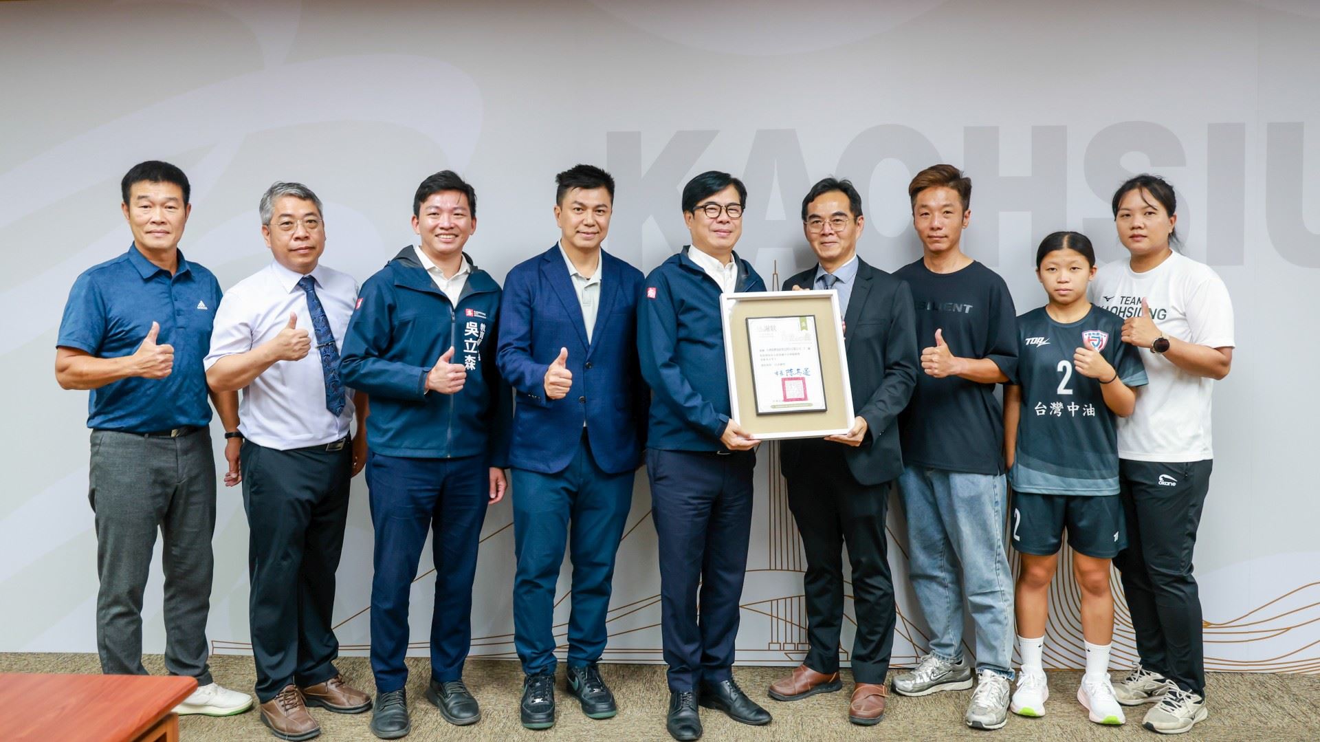 市政會議前,陳其邁另外致贈感謝狀予「日月光投資控股股份有限公司」及「台灣積體電路製造股份有限公司二十二廠」企業代表,表揚相關企業熱心贊助高雄後勁國中女足赴澳洲參加比賽。