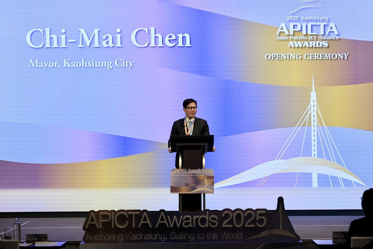 陳其邁表示,APICTA Awards首次在高雄舉行,能夠與來自亞太地區的優秀團隊齊聚一堂,為最具影響力的數位創新盛事揭開序幕,這不僅是高雄的榮耀,更象徵城市在國際舞台上的創新能量獲得肯定。