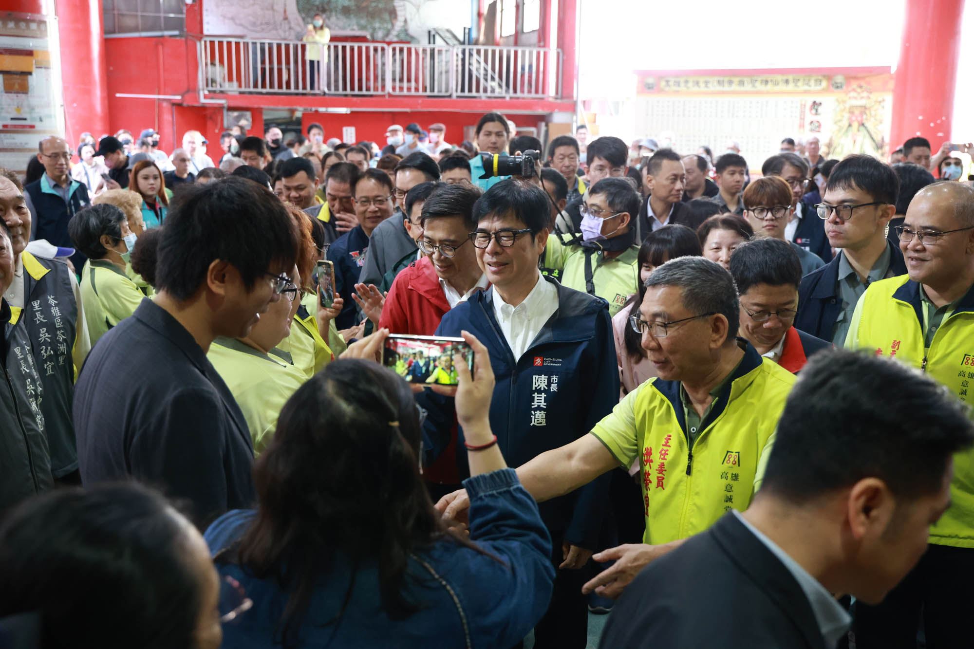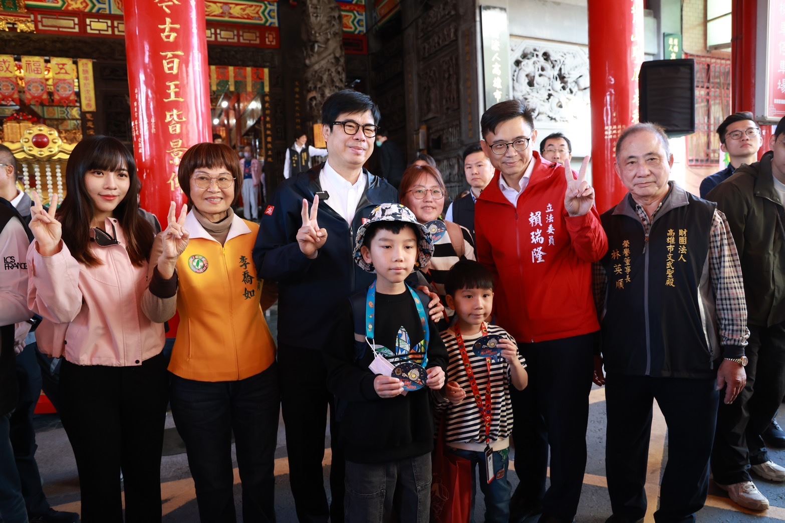 【高雄訊】農曆春節將至,高雄市長陳其邁今(7)日上午展開馬年走春祈福行程,自鹽埕文武聖殿起跑參香,接連走訪前金萬興宮、苓雅意誠堂,下午則前進武廟市場拜年,除了向眾神祈求國泰民安、風調雨順,並發送超人力霸王開運紅包,親手將新年祝福傳遞給市民朋友,祝賀鄉親「馬上幸福」、「馬上成功」,小朋友也熱情帶著超人力霸王公仔前來合照。