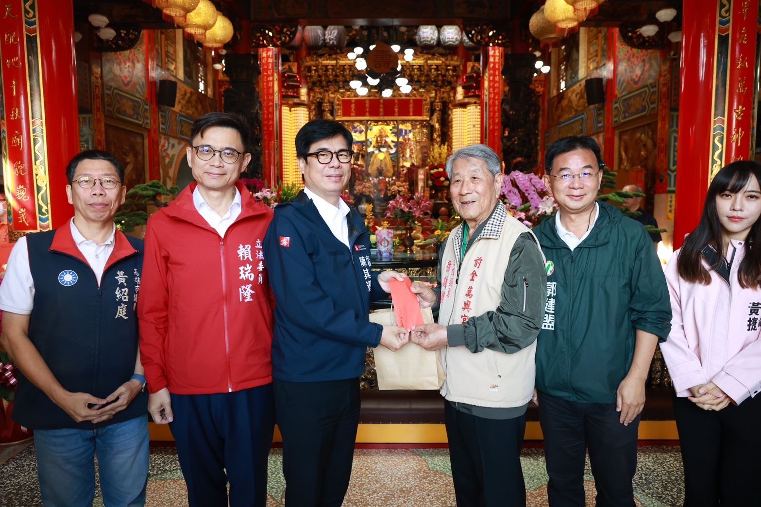 陳其邁表示,鹽埕區的文武聖殿是地方信仰中心,10多年來,不論是在救護車、消防車的捐贈,或投入公益慈善事業,皆愛心不落人後,因此今年走春發放紅包行程從文武聖殿起跑,以此表達感謝之意,也祈請關聖帝君及眾神明神威顯赫,保佑高雄未來一年四時無災、八節有慶。