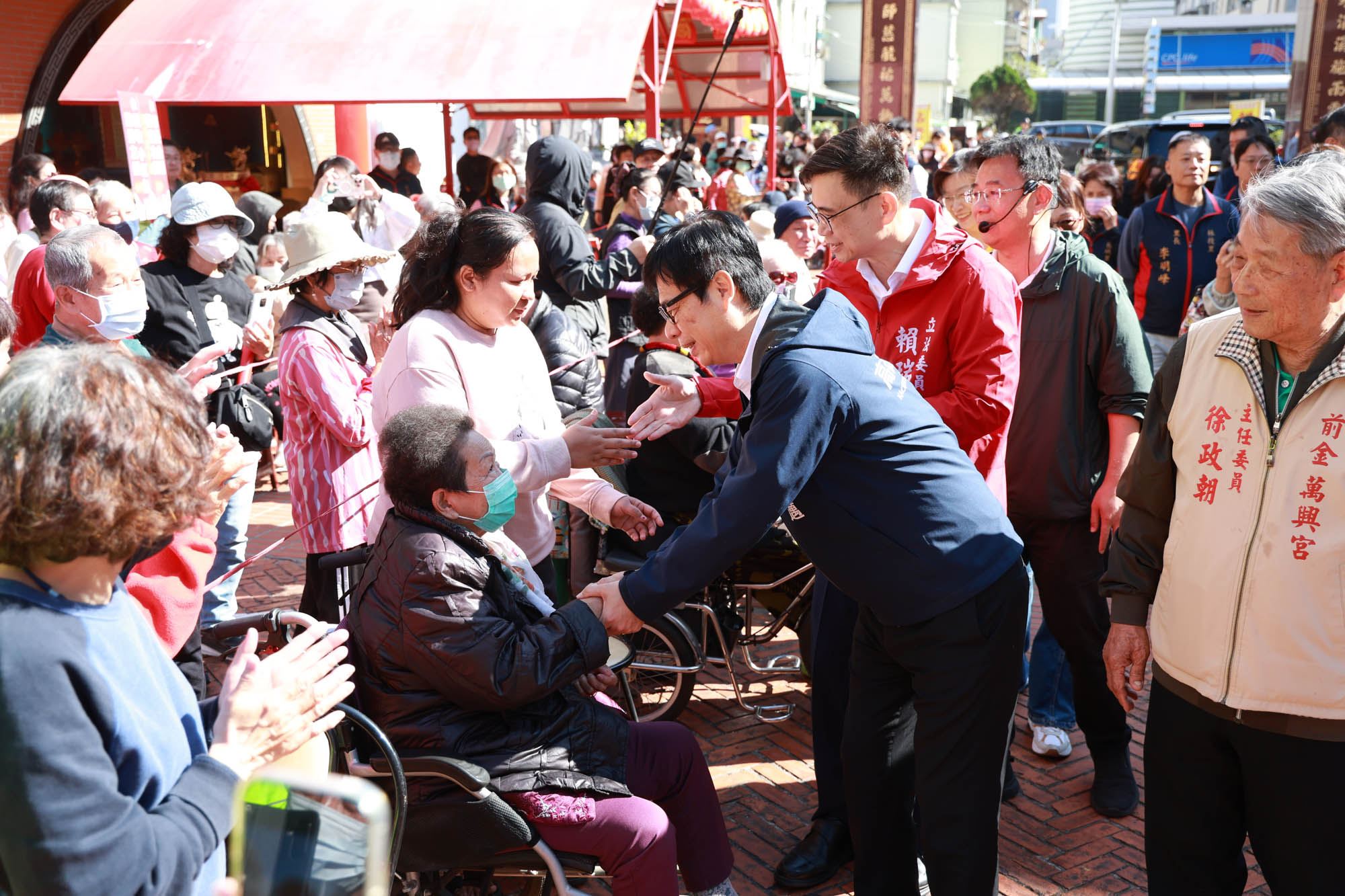 高雄冬日遊樂園經典英雄IP「超人力霸王」小紅包,受到跨世代的大小朋友喜愛,大批民眾扶老攜幼來到鹽埕、前金及苓雅三間廟宇等候領取開運紅包,盼能討個新春好彩頭,將幸福好運帶回家,廟埕排起長長人龍、人潮絡繹不絕,陳其邁親切向鄉親問候互動、互道新年快樂,現場洋溢著春節喜慶氛圍。