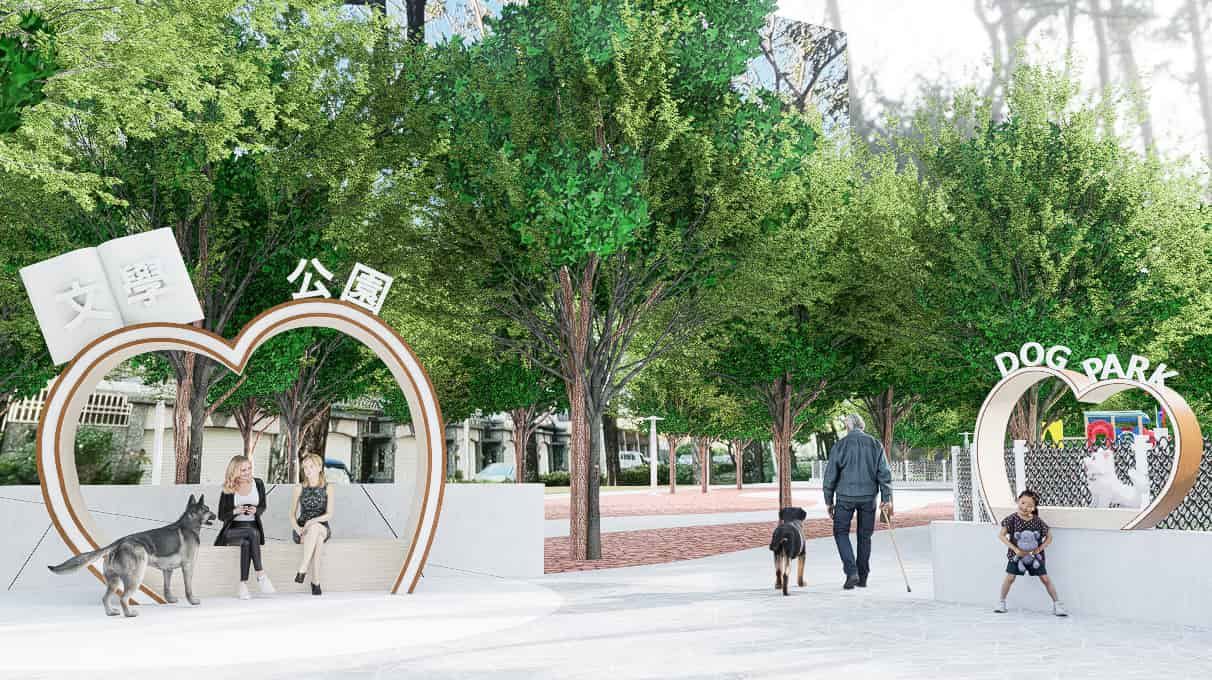 公園處進一步說明,文學公園狗狗活動區完工後將提供城市中一處專屬狗狗的綠洲,新設狗狗活動區,區分大犬與小犬的活動區,設置安全圍籬、雙層出入口、犬隻專屬遊具、飲水及清潔設備等服務設施,座椅配置則便利主人在休憩時與狗狗互動,兼顧安全與舒適。同時,地方也期望在活動區規劃時,能一併改善公園內老舊步道、排水及其他設施,提升公園整體環境,亦讓居民在共享空間中增進交流、享受生活!