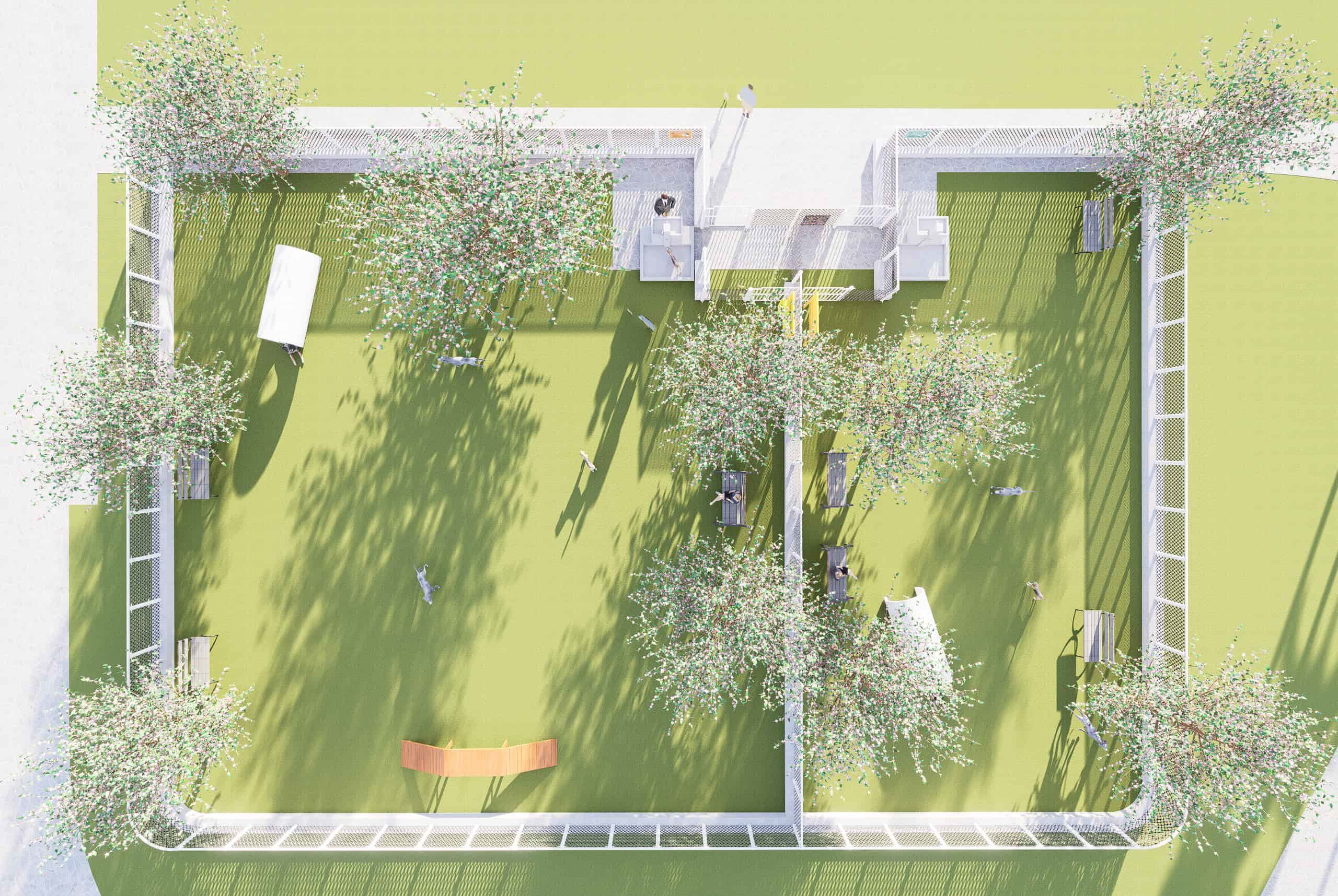 考量公園鄰近海港、日照強烈且原有遮蔭不足,設計團隊特別選用耐風、耐鹽害的濱海喬木增植於活動區周邊,並增設多組休憩座椅,營造舒適的陪伴空間。活動區設於園內綠地,經整平後鋪設草皮,並設置安全圍籬、雙層出入口、飲水與清潔設備及夜間照明,全面提升便利性與安全性。