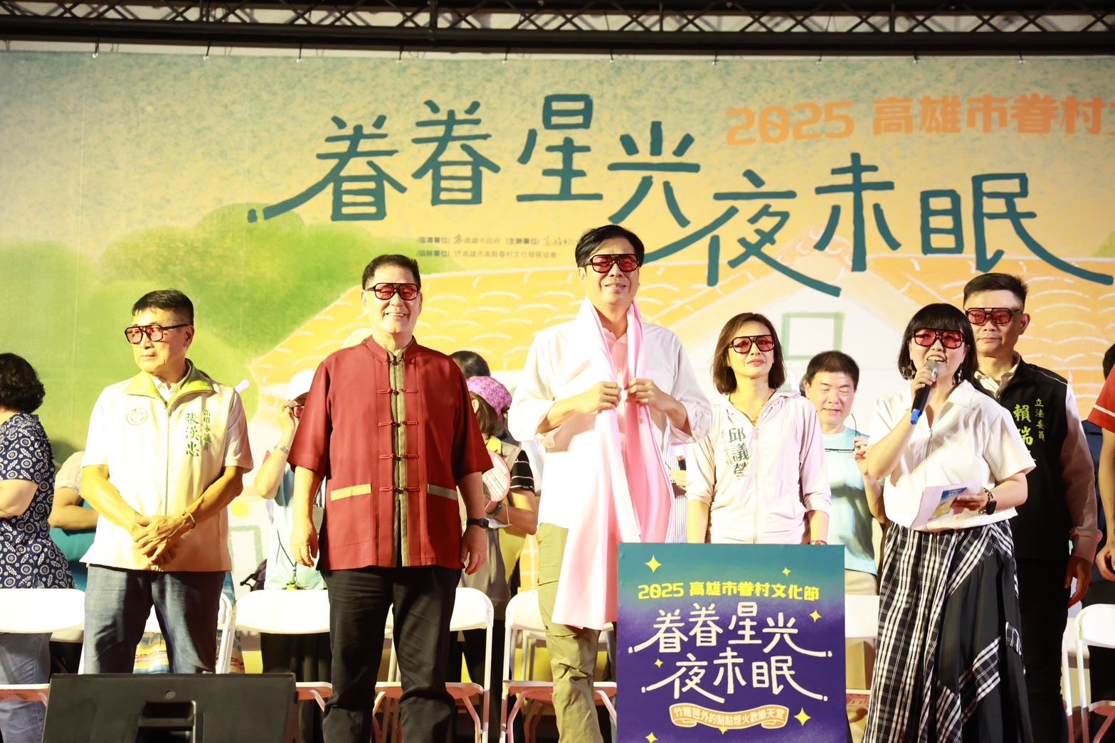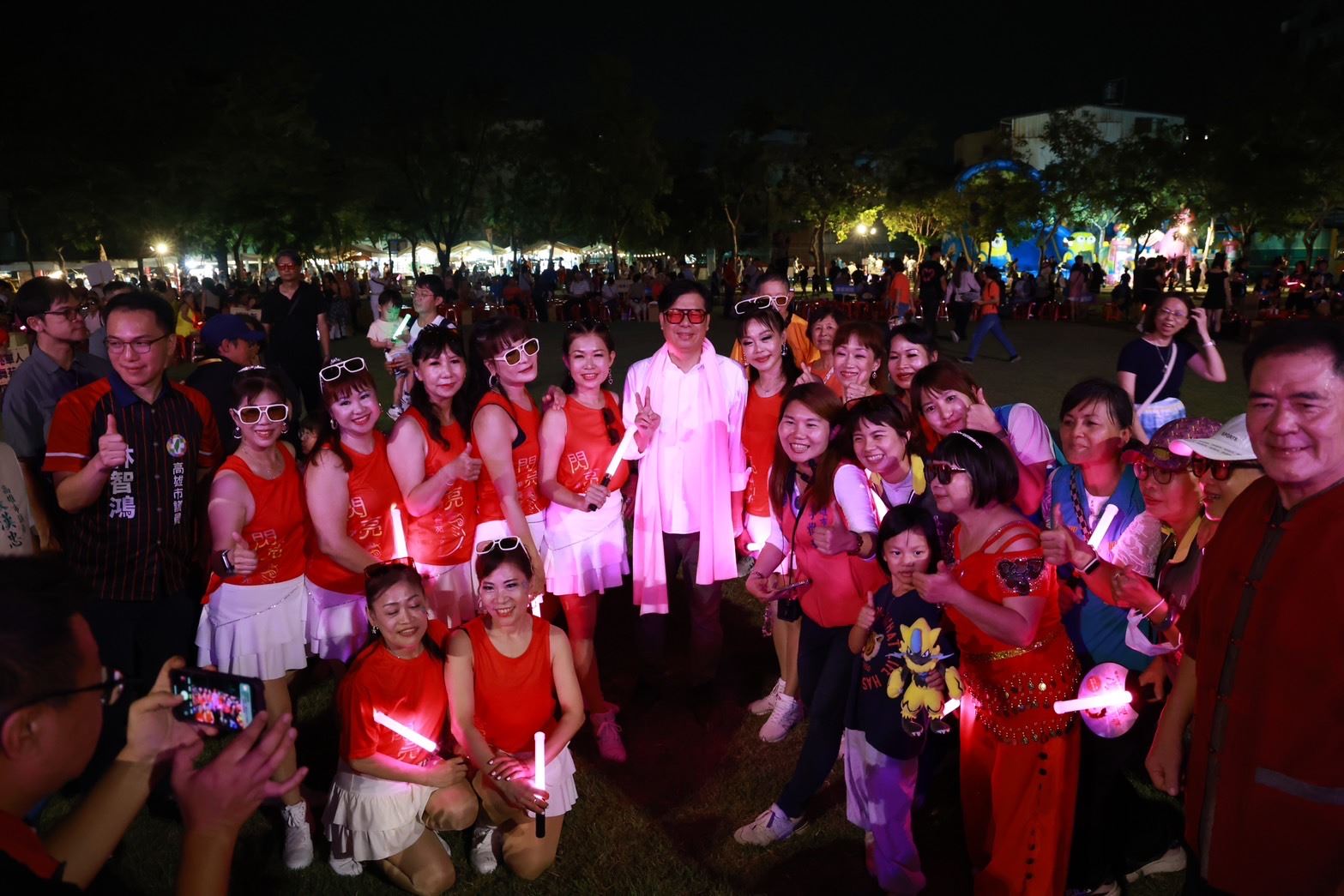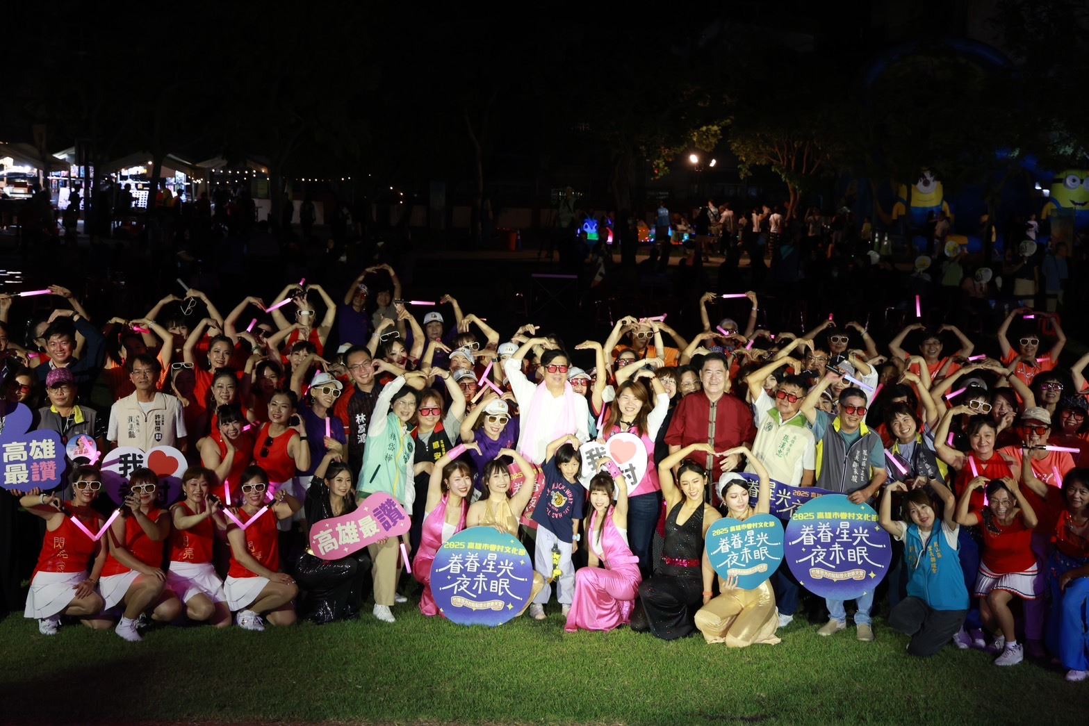 【高雄訊】邁入第 19 屆的「高雄市眷村文化節」今(18)日下午於鳳山瑞興國小熱鬧登場,今年以「眷眷星光夜未眠」為主題,首度聚焦眷村夜晚生活,打造月光市集、趣味闖關、復古舞會、暗棋大賽等多元活動,重現眷村居民在竹籬笆間的夜晚美好時光。市長陳其邁戴著復古大墨鏡、身披粉色圍巾華麗登場,並與超過千名市民朋友一同跳起 DISCO 舞蹈,現場播放經典復古金曲《熱線你和我》,氣氛熱烈,宛如時光倒流,讓市民共同體驗復古魅力。