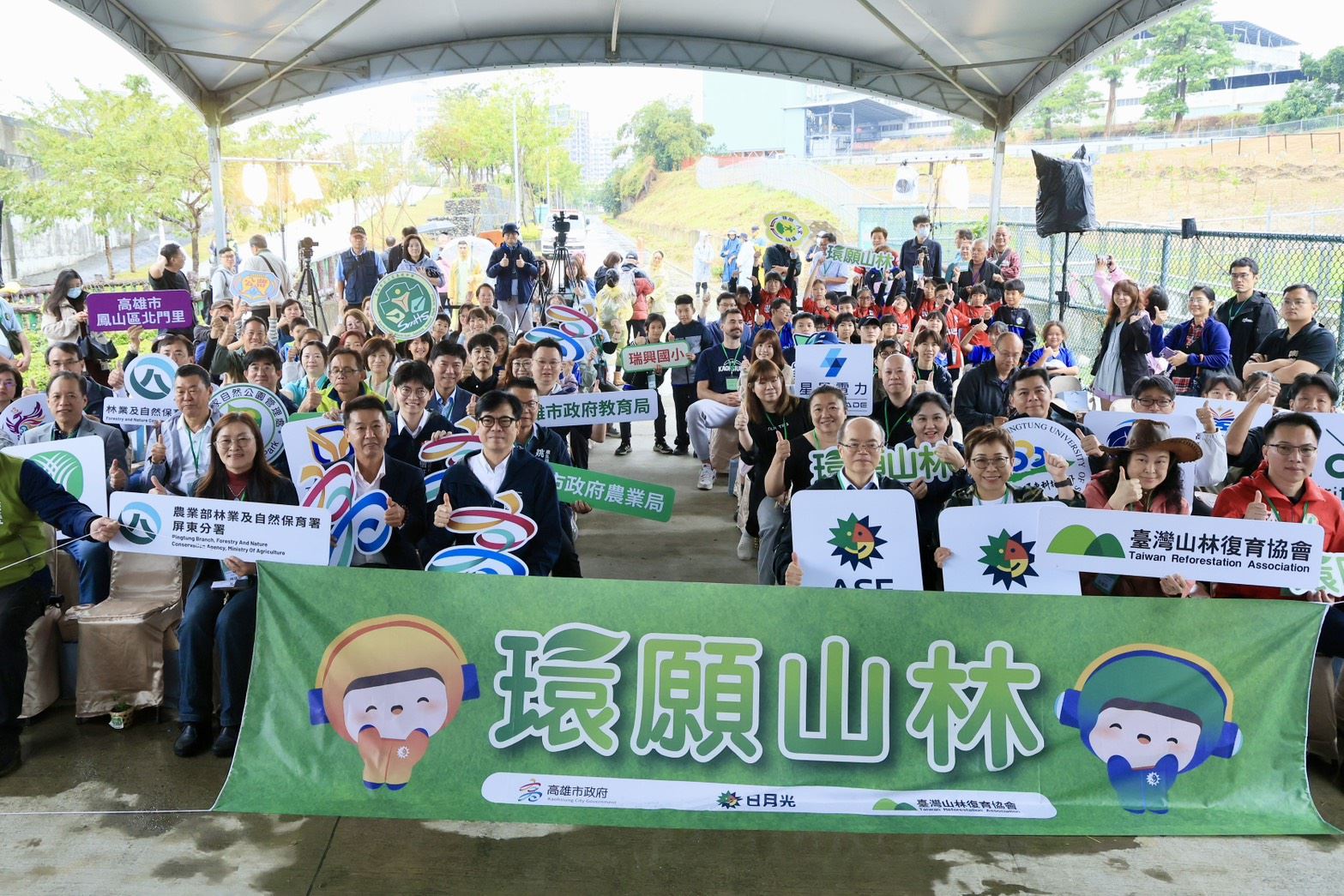 【高雄訊】高雄市政府與日月光集團、臺灣山林復育協會共同推動「環願山林-高雄淺山生態跳島」平地造林計畫,市長陳其邁20日出席活動,與農業部、臺灣山林復育協會、高雄全家海神、新創企業團隊、各級學校及地方代表,偕同日月光行政長汪渡村等貴賓共同種下希望樹苗,以實際行動復育在地生態,打造永續韌性城市。