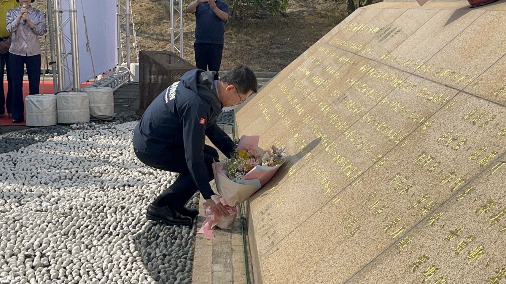 【高雄訊】高雄市政府於(14)日下午在旗津舉辦「115年度勞動女性紀念公園春祭活動」,高雄市政府秘書長郭添貴及高雄市女性權益促進會監事蔡麗玲分別致詞致祭「高中六號」事件罹難者並誠摯慰問家屬代表。隨後由郭添貴秘書長、蔡麗玲監事、勞工局長江健興及各界來賓與家屬代表,一同於紀念碑前獻花,行禮追思,現場氛圍溫暖莊重。
