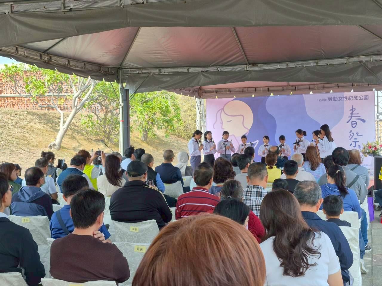 今年春祭活動特別邀請在地中洲國小同學,以清亮直笛演奏《望春風》、《四季紅》,純淨樂音為典禮揭開序幕;並邀請知名視障歌手呂湘婷深情彈唱《我只在乎你》、《月亮代表我的心》等華語經典名曲。悠揚旋律隨海風輕拂流轉,在會場間迴盪,以音樂串聯不同世代的情感記憶,帶領現場民眾回望臺灣產業發展與經濟起飛的歷程,並向長年為臺灣社會與家庭默默奉獻的女性勞動者,致上最誠摯而崇高的敬意。