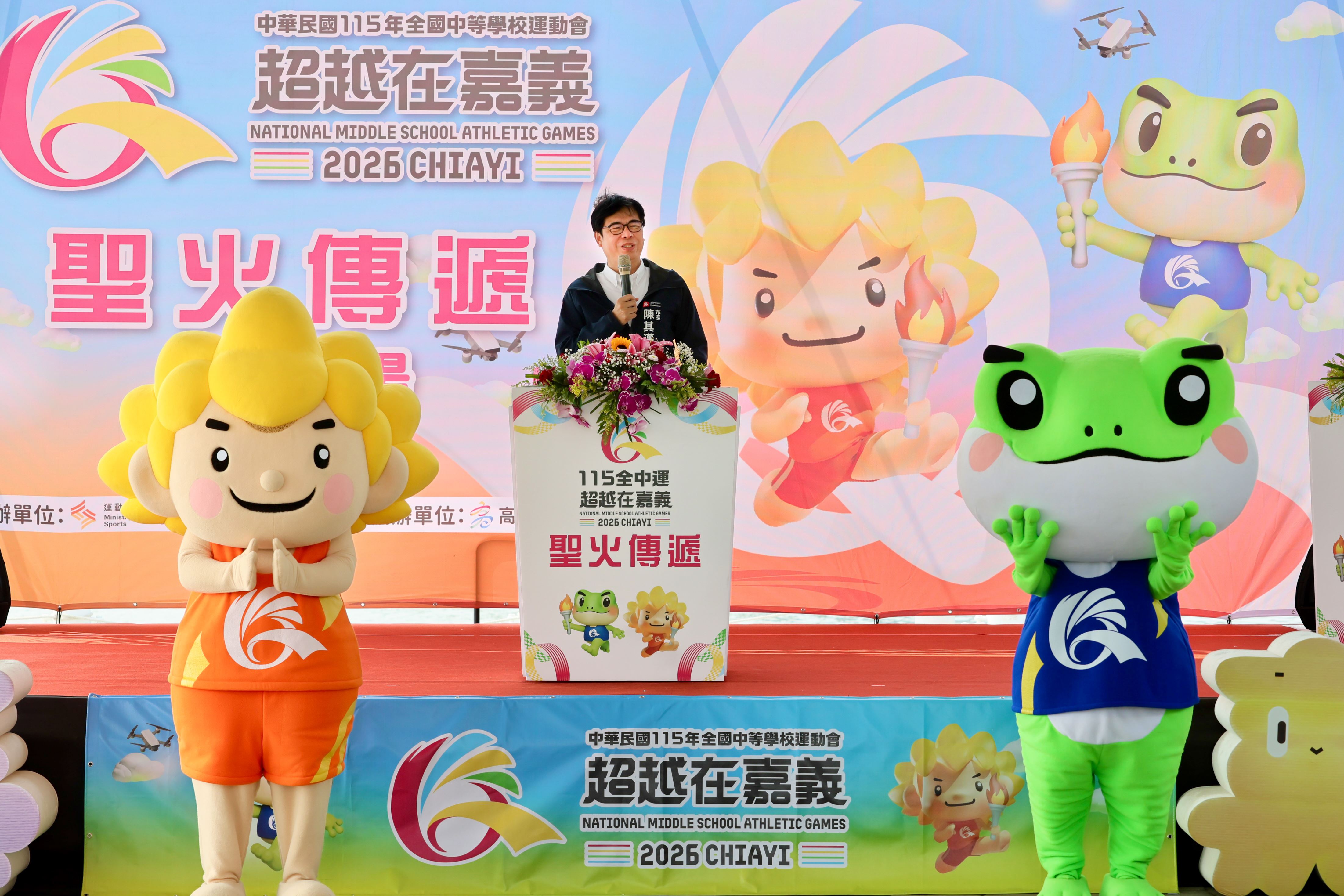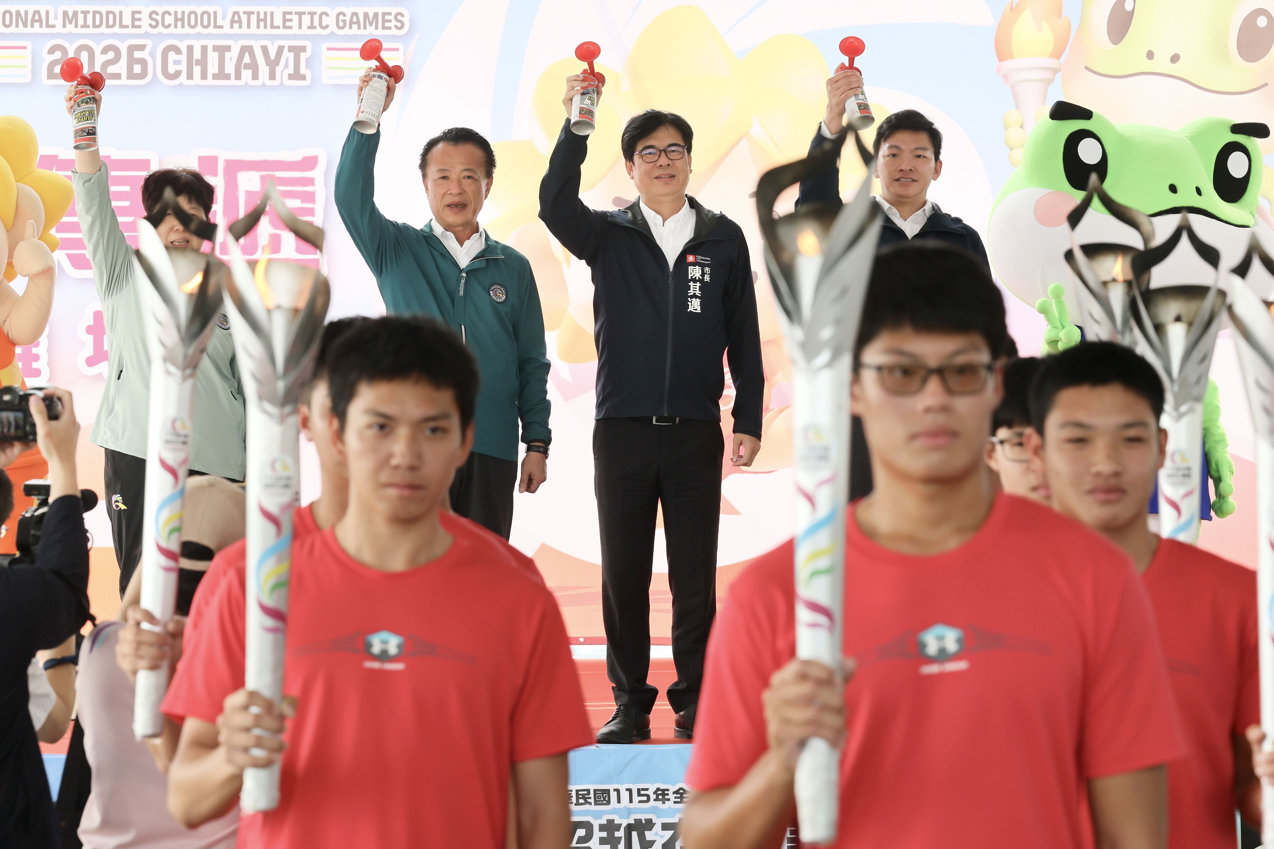 【高雄訊】115年全國中等學校運動會將於4月中旬在嘉義縣盛大舉辦,象徵青春與榮耀的全中運聖火,完成離島傳遞後抵達高雄,市長陳其邁今(23)日與嘉義縣長翁章梁進行城市行銷互動與聖火交接儀式,展現南部縣市深厚情誼與跨域合作,聯手齊心力挺青年體育發展,並勉勵選手們締造佳績。