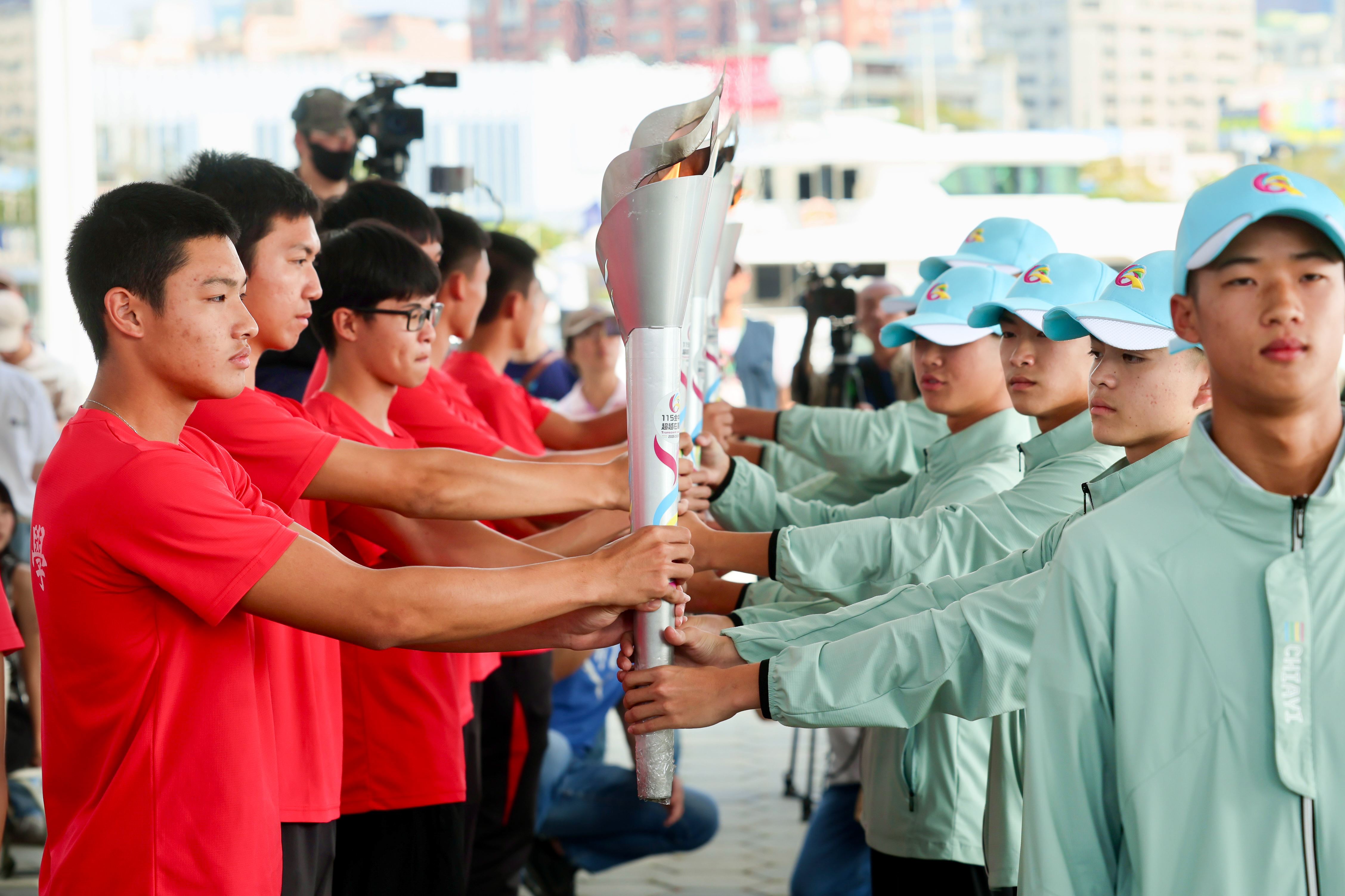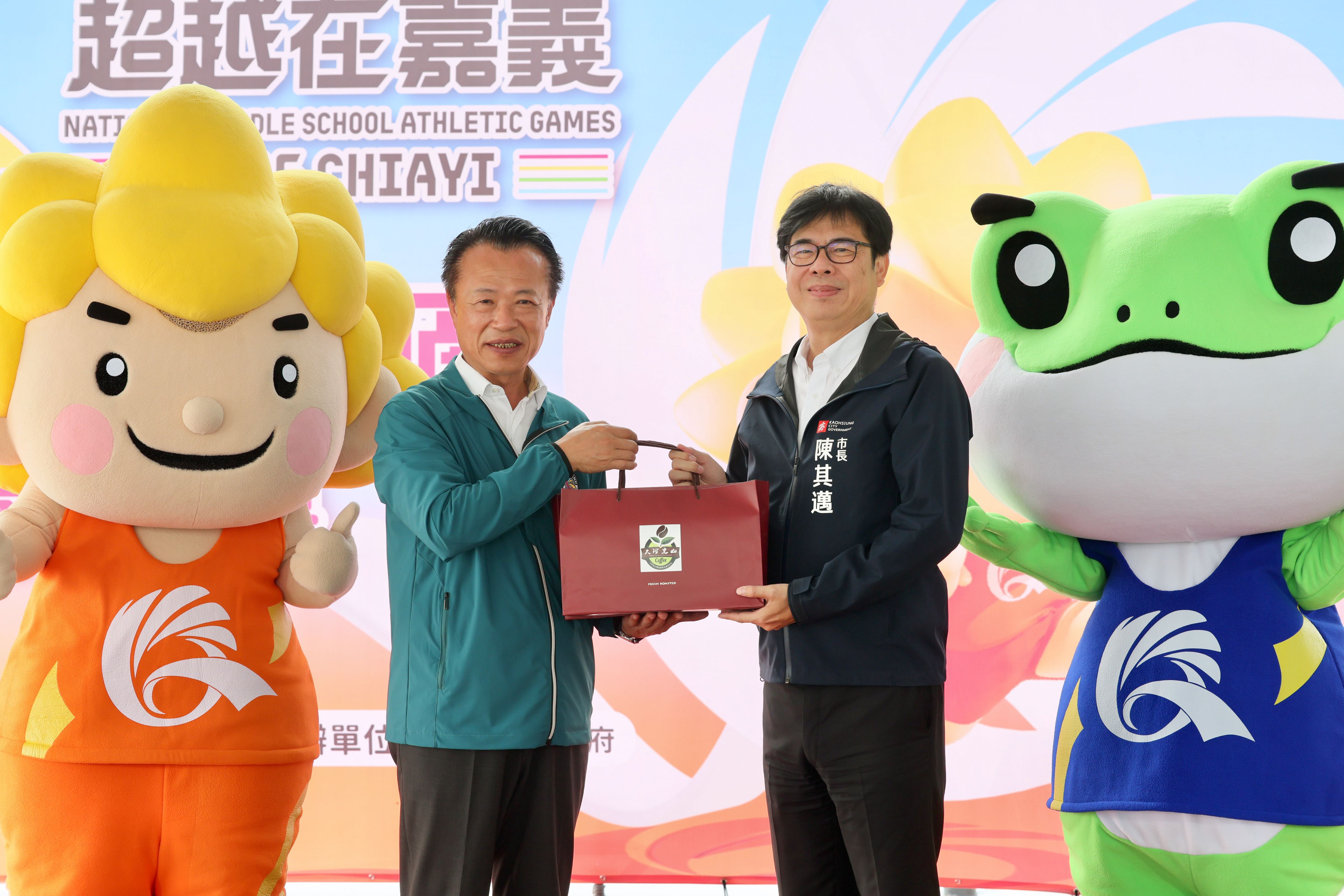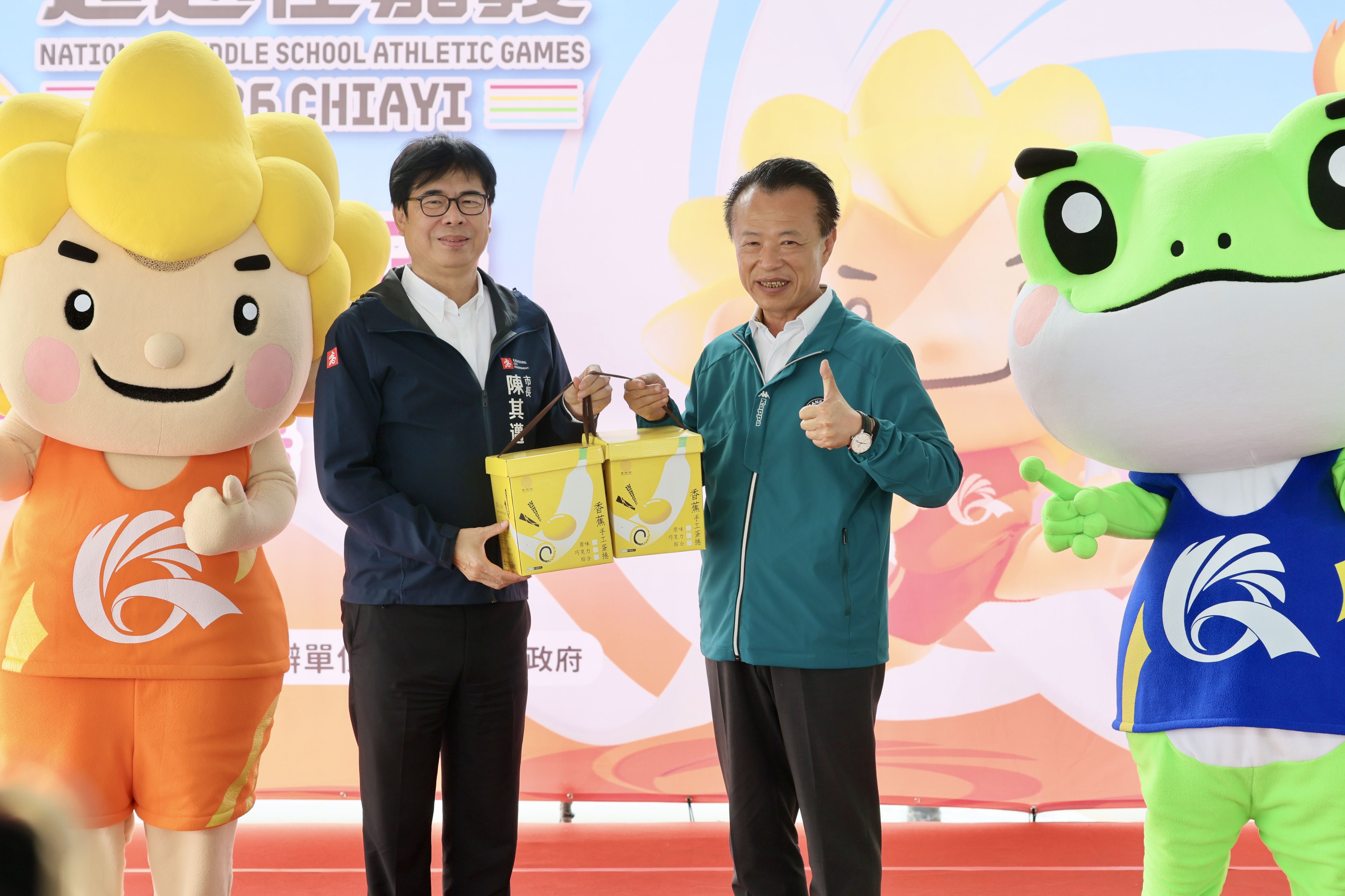 為即將登場的全中運揭開熱血序幕,聖火今日於高雄流行音樂中心交接,並在嘉義縣長、高雄市長的共同鳴笛下,象徵聖火隊出發啟程,儀式隆重意義深厚,展現城市攜手支持體育發展的合作精神;此外,翁章梁與陳其邁也相互致贈在地精選農特產品阿里山精品咖啡與高雄旗山香蕉蛋捲,象徵友好交情,高雄並以地主情誼支持嘉義縣,讓聖火點燃選手的夢想之路,為選手喝采。
