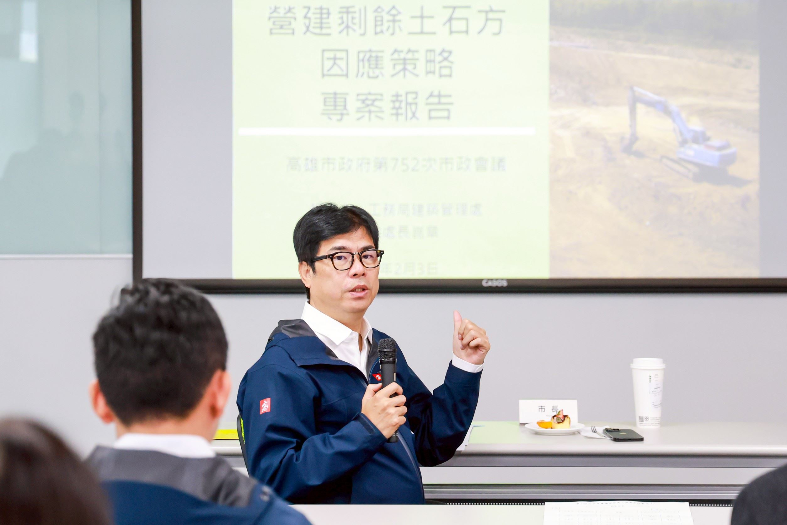 市政會議中,工務局於會中簡報「本市營建剩餘土石方(營建餘土)因應策略專案報告」。陳其邁表示,因應營建餘土去化問題,市府已積極提出具體對策與執行方案,請工務局加強向相關業者溝通說明;並持續落實本市營建餘土管理措施,包括推動高雄港區整地收受土石方實施計畫、簡化營建餘土運送流程,以及全面運用電子聯單與GPS追蹤等機制,確保營建餘土去化有序、流向可管,維護環境永續發展。