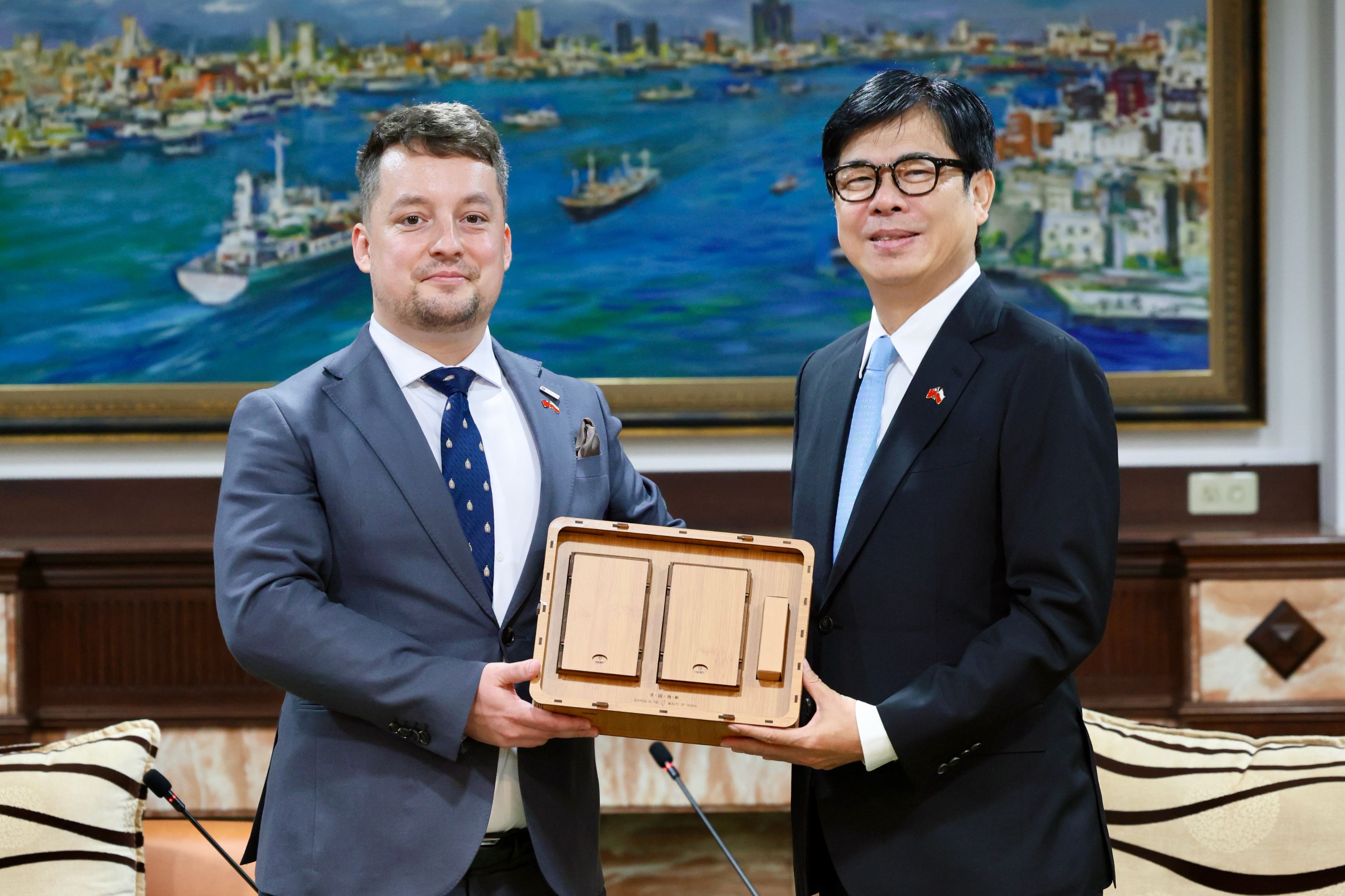 陳其邁表示,台灣與波蘭雖相距遙遠,但共享自由、民主等普世價值,相似的歷史經驗也讓雙方人民更能彼此理解與支持。面對複雜多變的國際情勢,雙方更應攜手合作,共同促進區域穩定與發展。在經貿方面,波蘭為台灣在歐盟的重要貿易夥伴,近年雙邊在半導體、人工智慧、無人機及氫能等領域建立多項合作機制,顯示高雄與波蘭具高度合作潛力,期盼在畢爾斯基處長協助下,促成更多合作成果。