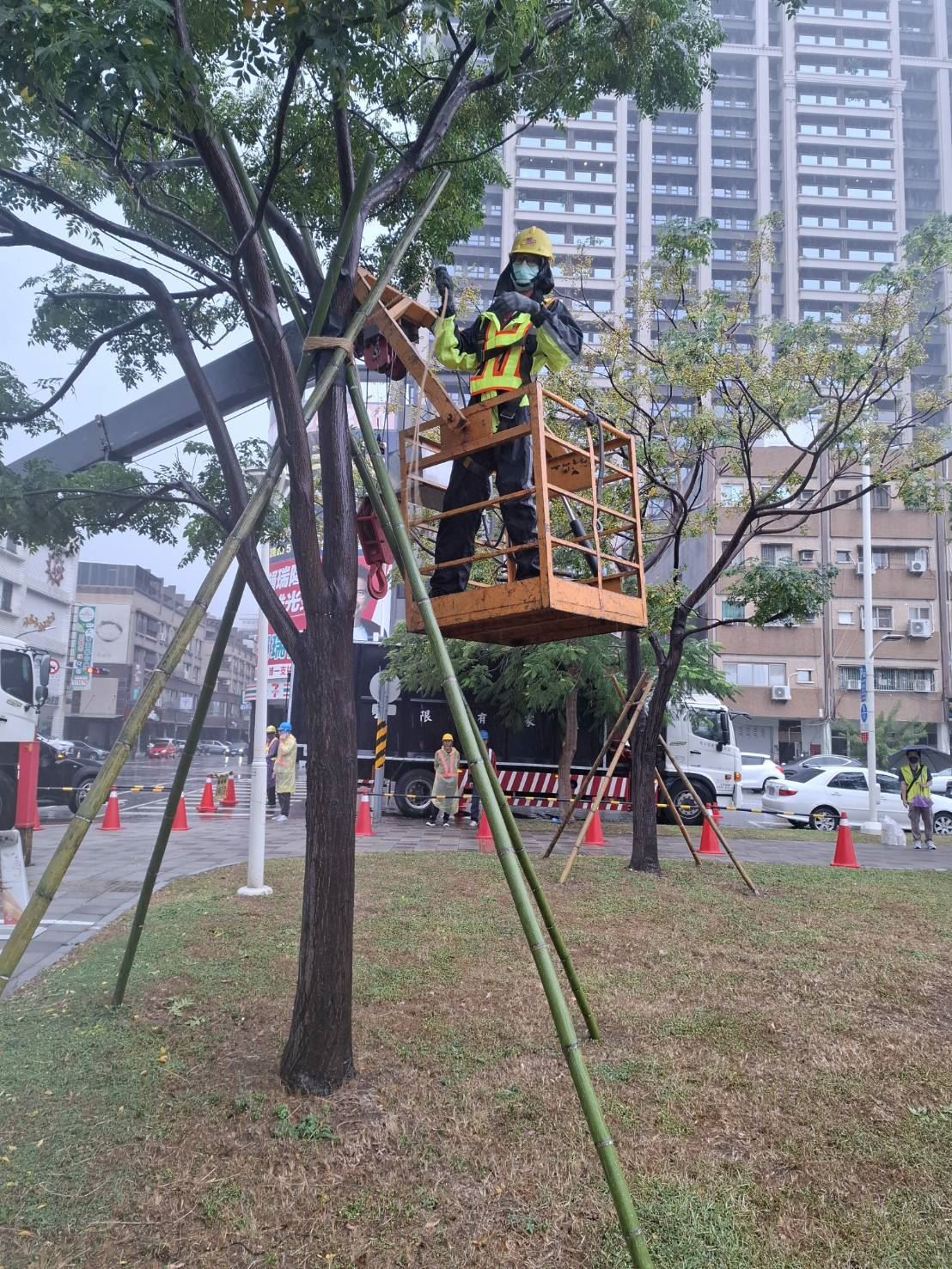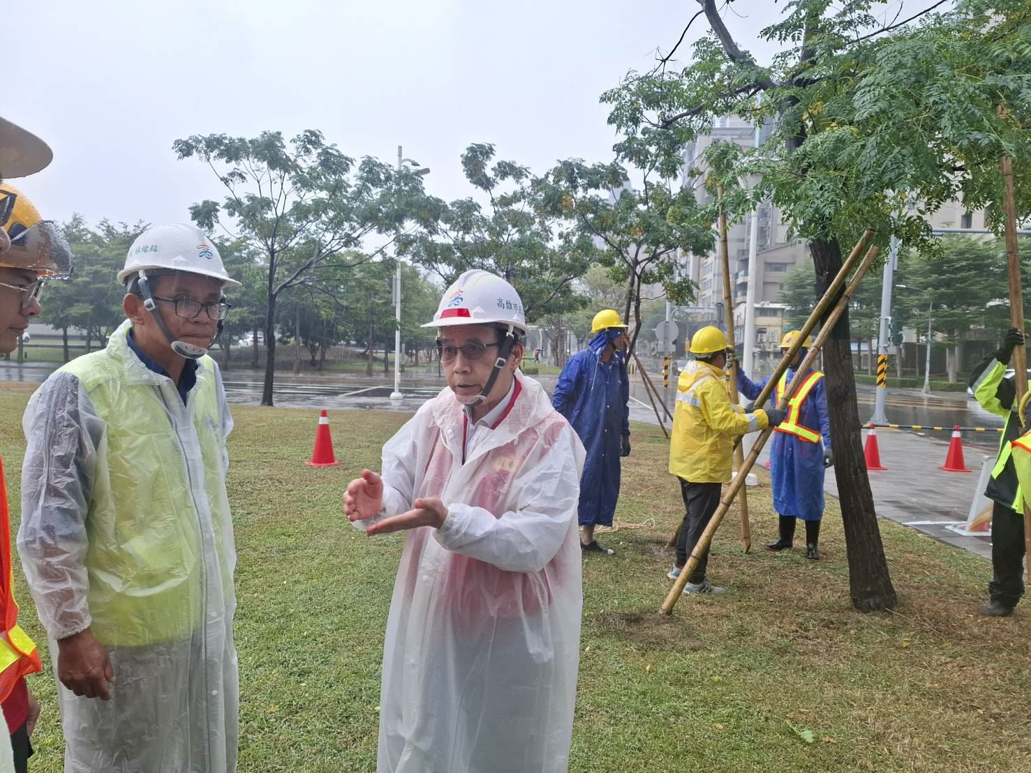 工務局局長楊欽富表示,工務團隊已動員人力,加強行道樹的疏枝修剪及支架固定工作,以抵抗風壓避免傾倒,同時加強所管轄的公園、行道樹疏枝修剪、支架固定,及路燈、開關箱檢修等,颱風來臨期間將持續進行巡查及喬木加固等作業,並整備自有救災機具人力,若颱風帶來災情,將迅速投入災後復原行動,確保市民安全,維持交通順暢。