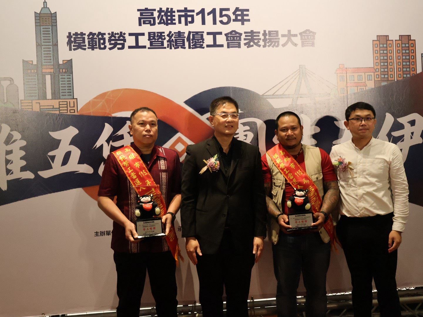 每一位模範勞工的得獎者,都有平凡卻動人的故事;模範勞工孫學山任職國喬石油化學公司高雄廠,除職涯表現卓越多次晉升外,於擔任企業工會理事長時促成與事業單位簽訂團體協約,爭取創造會員更多優於勞基法的勞動條件;同時現任高雄市石化業產業總工會理事長,參與勞工事務不遺餘力,亦無償協助弱勢家庭學生課後輔導,克盡社會責任,具備專業素養與利他之勞工楷模精神。另一位模範勞工蔡淑惠任職於本市大寮區忠義國小擔任工友34年,工作態度認真,對待學校師生親切溫暖,深受肯定與信任,另該校為空品示範區績優學校,其負責維護該校偌大草坪,使該校蟬聯常勝軍,蔡員秉持「愛校如家,視全校師生為家人」,使師生能在安心舒適環境中學習成長,實為勞工敬業態度真誠展現。