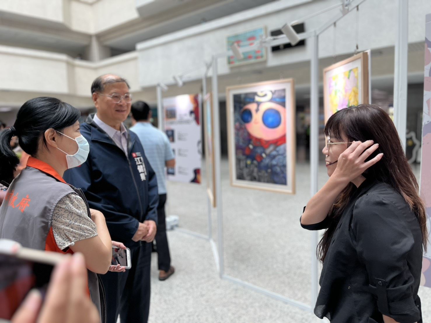 江健興局長表示,陳其邁市長非常重視身心障礙朋友就業與權益的照顧,勞工局一直致力於推動身心障礙朋友的多元就業服務,本次展覽不僅是一場藝術饗宴,更是一趟「創造與共融」的旅程,特別感謝每一位在藝術家背後提供支持的家屬與朋友,希望用藝術為起點,集結更多伙伴來開創一條新的道路,透過靜態展覽,讓民眾看見身心障礙朋友的才華與奮鬥過程,同時也開啟將他們精彩的創作作品,轉化成職業發展的契機。因此,勞工局希望藉由「藝術授權與支持」的合作模式,邀請企業或團體於欣賞創作的同時,也能將藝術家的精彩作品應用於商品或文宣品上,讓創作者可以透過藝術授權版稅的支持,持續在藝術的創作領域發光發熱。