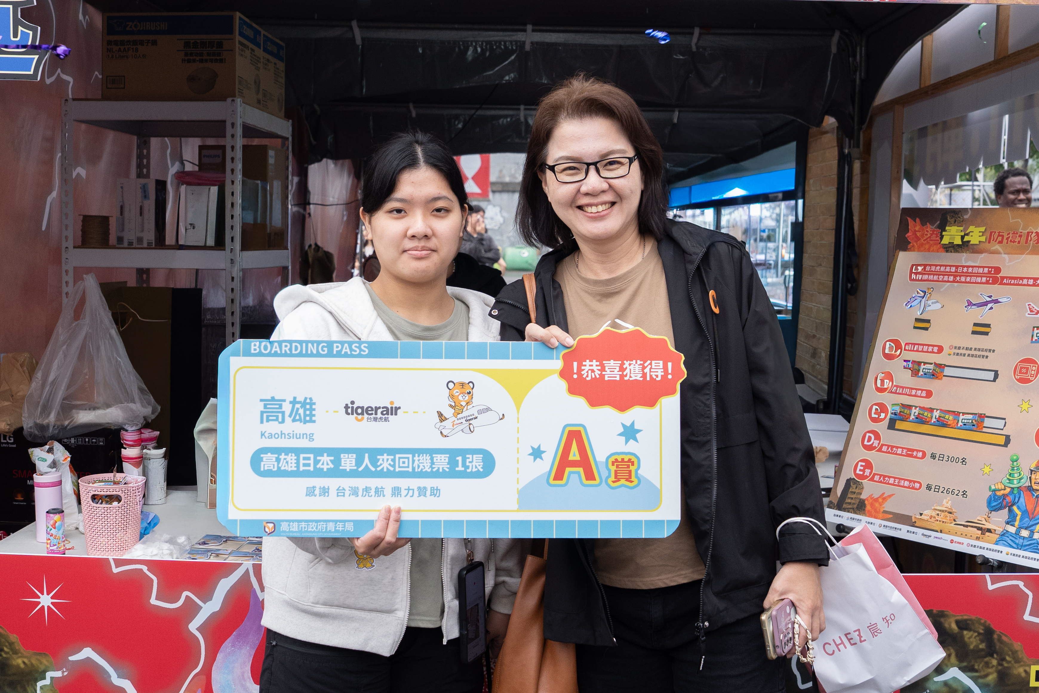 接連兩天的「OH!霸賞」抽獎活動,除透過「現場即時抽」送出多項「A賞」赴日來回機票好禮外,3月2日舉行的「線上加碼抽」也將抽出多組日本來回機票,得獎名單將公布於青年局社群平台。