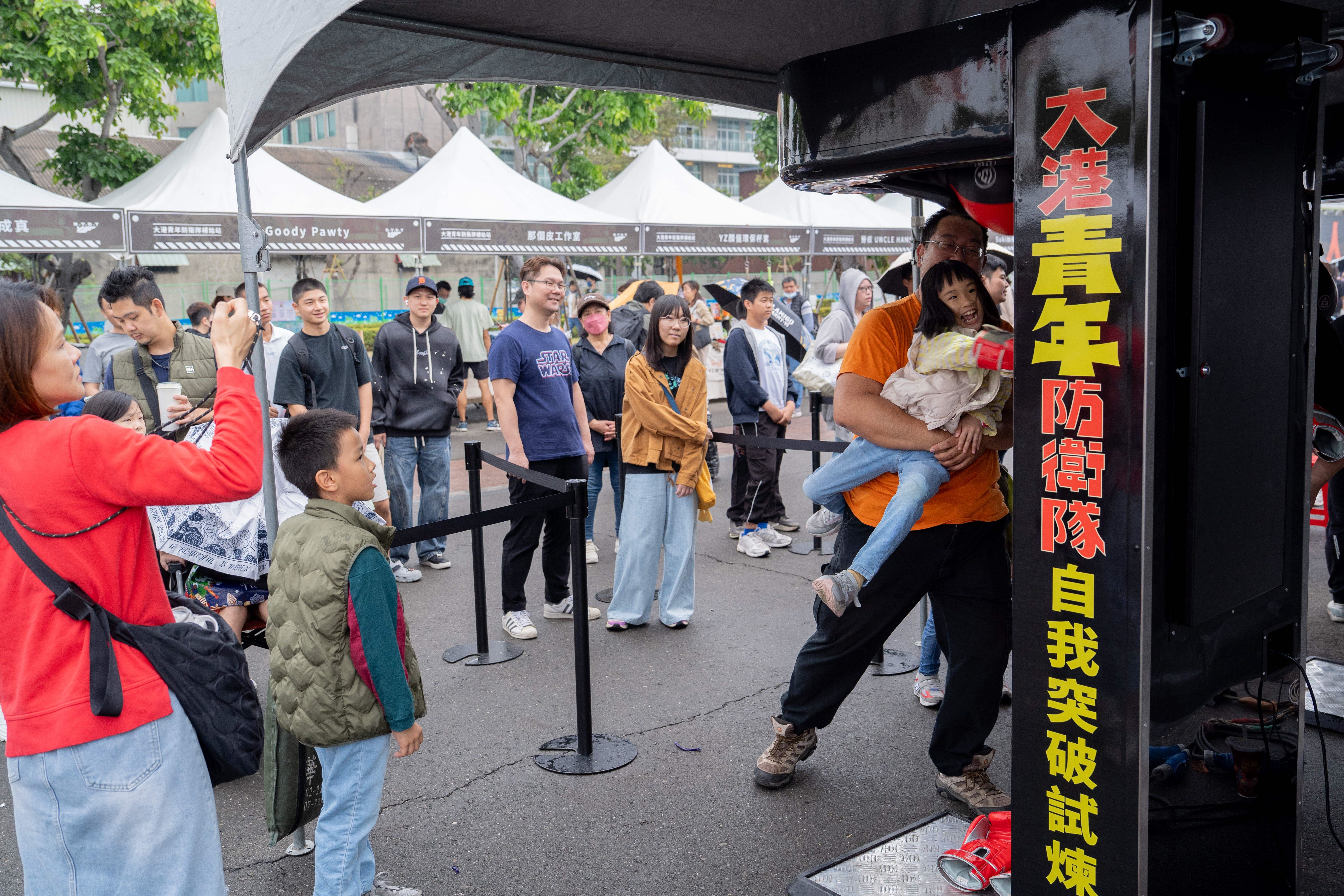 現場其他亮點如「超級青年特訓基地」亦吸引眾多親子排隊同樂,一試身手;由青創店家組成的「親子手作市集」,匯集手作、植栽、寵物用品等,讓民眾在玩樂之餘,能以實際消費支持青年局嚴選的優質店家,拓展青創品牌。活動現場亦可見裝扮精緻的 Cosplayer 穿梭其間,於青年塗鴉藝術家「培特豬」傾力繪製的3D打卡牆前駐足合影,立體透視構圖結合特攝風格元素,帶動社群分享熱度,廣泛擴散城市創意形象。