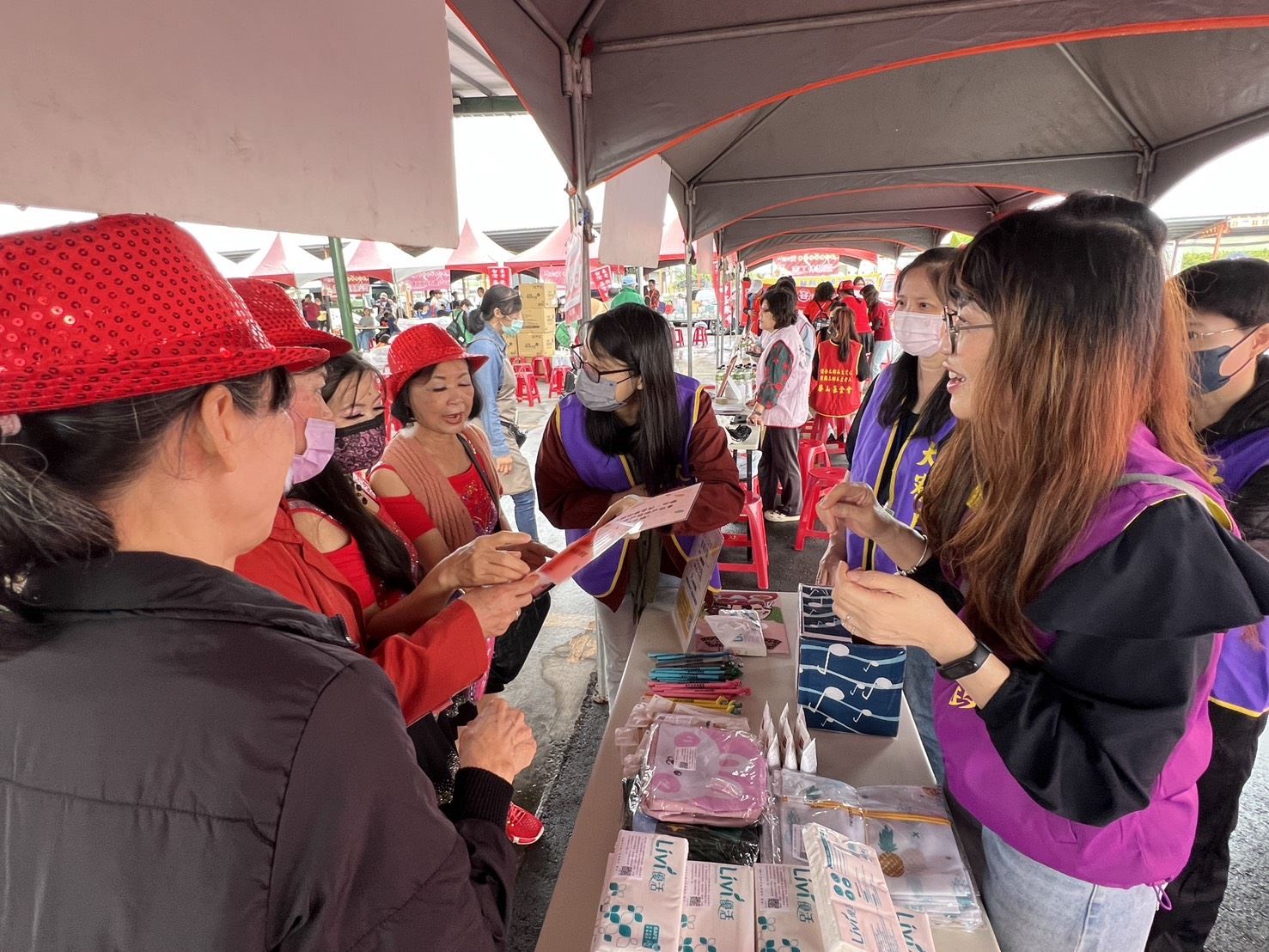 林園區公所多年來持續辦理歲末送溫情活動,敬邀大家熱心參與。大寮戶政事務所從不缺席共襄盛舉加入愛的行列特別設置宣導攤位,舉辦「戶政知識有獎徵答」活動,為弱勢家庭送上實質關懷與節慶祝福。只要隨機抽出有關戶政法令的問題卡,由戶政人員引導正確答題,就能再抽中戶所準備的實用民生宣導品,活動現場獲得很多民眾熱情踴躍參加並開心的說,不僅可以在輕鬆答題的過程中,進一步認識與自身權益息息相關的戶政新知和便民措施,還可以得到好用的生活用品「尚實在啦」!