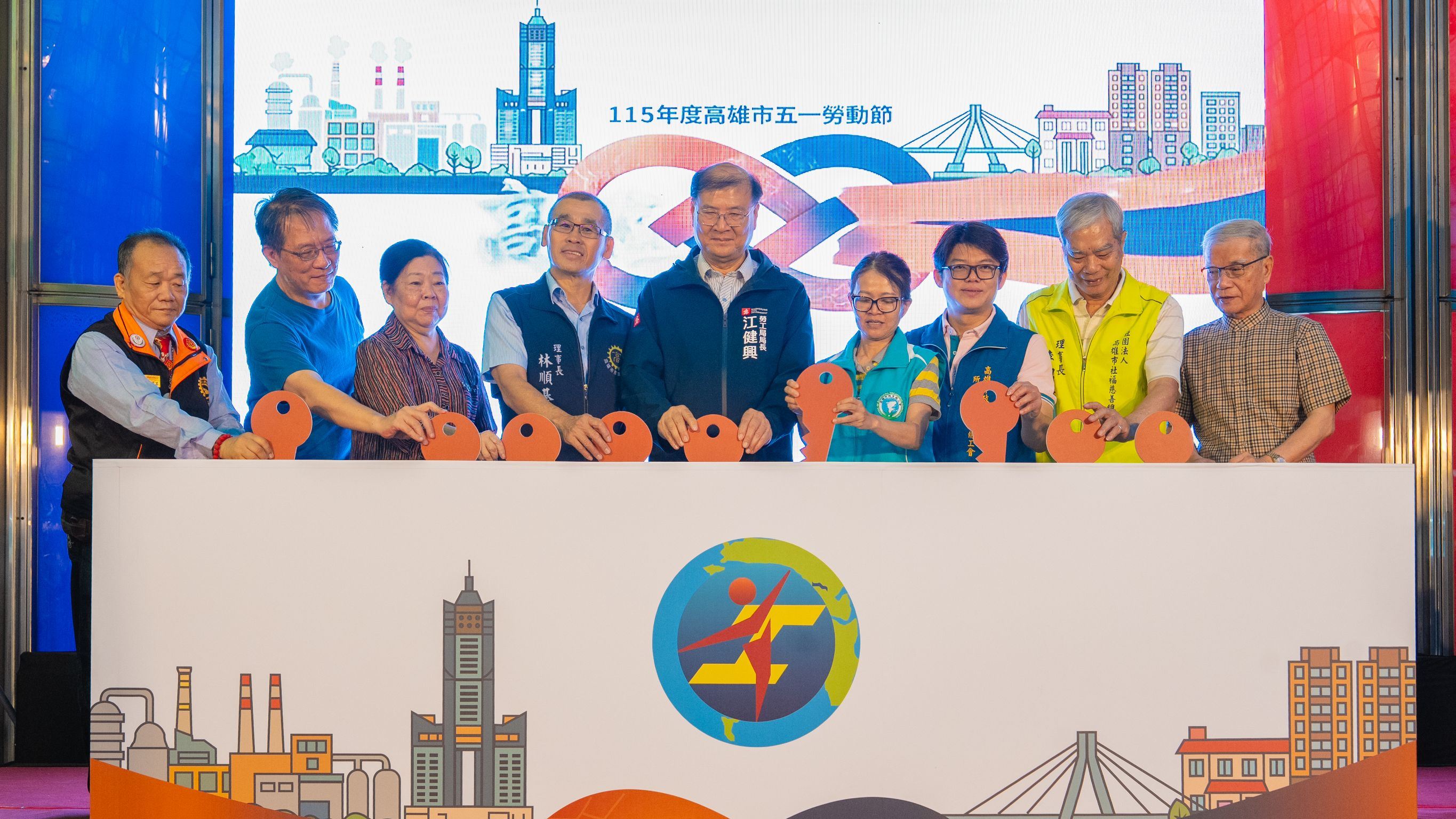 今年系列活動標題以「高雄五恁・團結五伊」為主軸,傳達在地勞工認同與團結的精神,透過彼此間的相挺與扶持,讓實踐公平城市的行動更有力量,也藉以呼應勞動節所關注的勞權保障與社會共好的願景。江健興局長表示,感謝勞工朋友長期為高雄的城市發展打拚、付出心力,是城市進步的重要力量。今年五一勞動節首度實施全國放假的國定假日,象徵政府對勞動價值的重視與肯定,針對基層勞工的心聲及工會提出的建議,勞工局將持續傾聽。同時強調職場安全健康永遠是第一優先,陳其邁市長尤其重視勞工朋友的安全健康,呼籲企業落實工安管理,所有的工作,安全第一,讓每位勞工都能「平安上班、安心回家」。未來市府也將持續與各界合作,一步步優化勞動環境,提升整體勞工福祉。