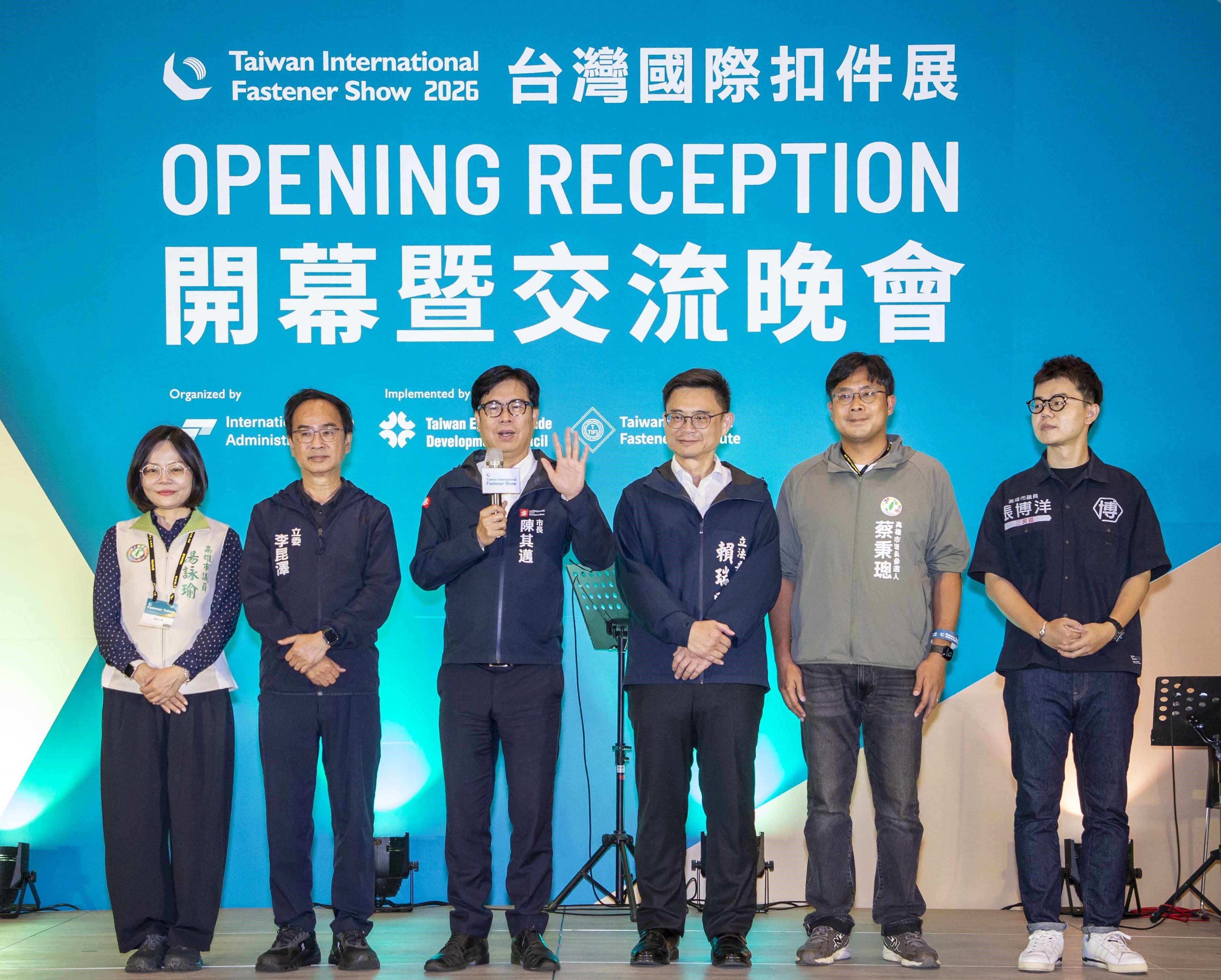 全球扣件產業專業買家齊聚高雄,「2026台灣國際扣件展」4月22日於高雄展覽館正式登場。經濟部貿易署副署長胡啟娟、外貿協會秘書長王熙蒙、台灣螺絲工業同業公會理事長蔡永裕及高雄市長陳其邁共同出席開幕晚宴。本屆展會以「高端化、高科技、高值化」為主軸,吸引317家廠商、950個攤位參展,並有逾700名國際買主預先登記,較上屆成長55%,顯示市場熱度持續升溫。