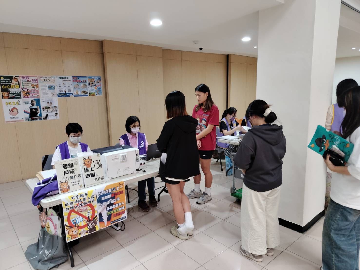 苓雅戶所多年來與國立高雄師範大學建立良好合作默契,每學期均派員到校服務,現場受理核發戶籍謄本,亦鼓勵學生透過高雄市戶政資訊服務網線上申辦戶籍謄本,加速完成助學貸款事宜,成效深獲肯定。活動同時宣導多項政策與便民措施,包括檔案應用、防毒防詐、CRPD、志工招募、1925安心專線、職業安全防墜與預防熱危害等,並說明遷徙登記應依實際居住事實辦理,以落實「人籍合一」原則。此外,戶政人員亦藉由本次活動宣導「出境遷出登記」相關規定,另提醒國人出境逾二年將依法辦理遷出登記,未滿二年者亦得主動申請。另鑑於近年詐騙案件頻傳、手法層出不窮,呼籲民眾切勿輕易洩漏個人資料或將身分證、戶籍資料、自然人憑證等重要證件交付他人,以免遭不法利用,導致身分遭冒用、財產損失,甚至須承擔相關法律責任,讓學生們對戶政業務有更深刻瞭解。