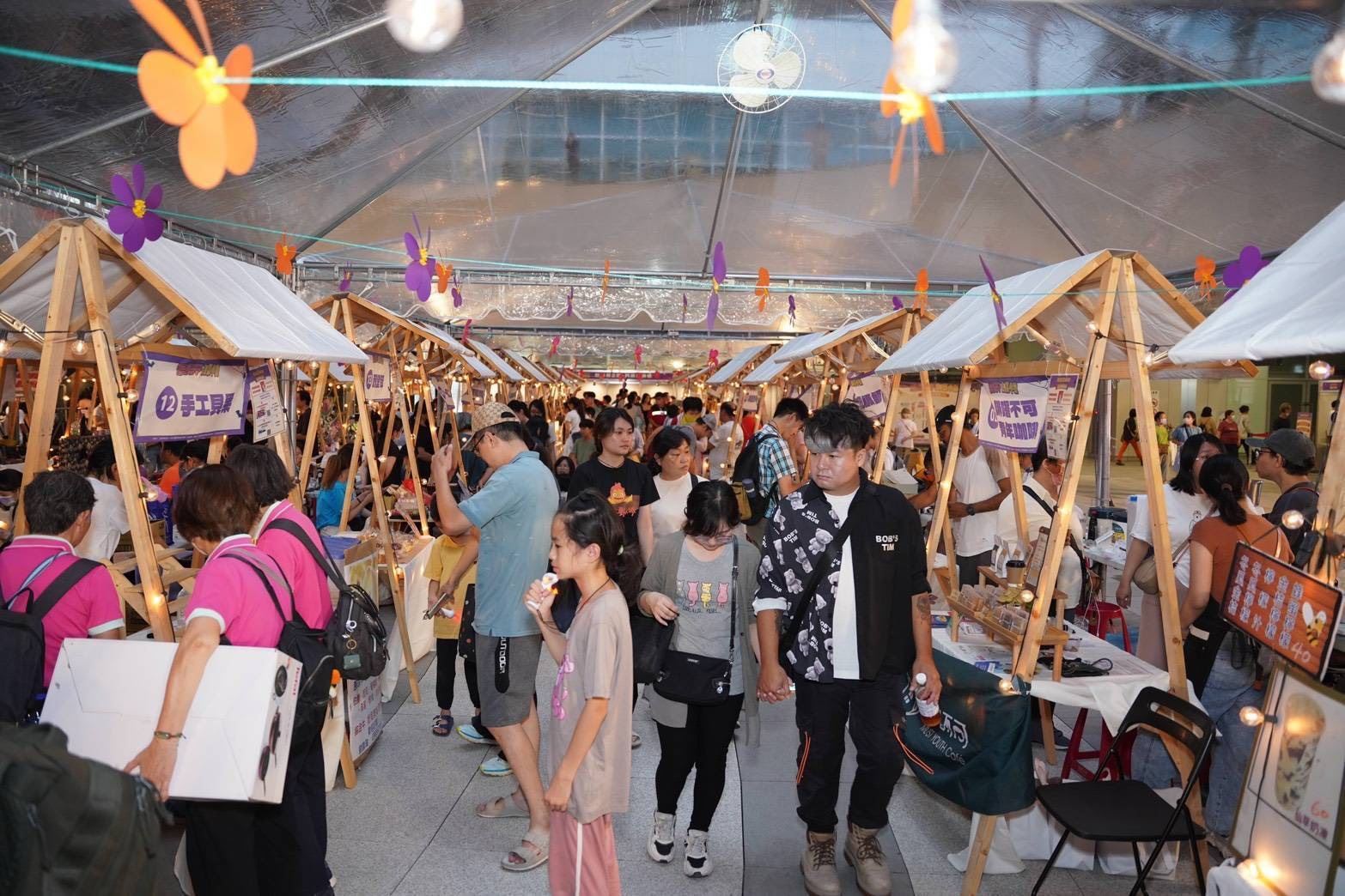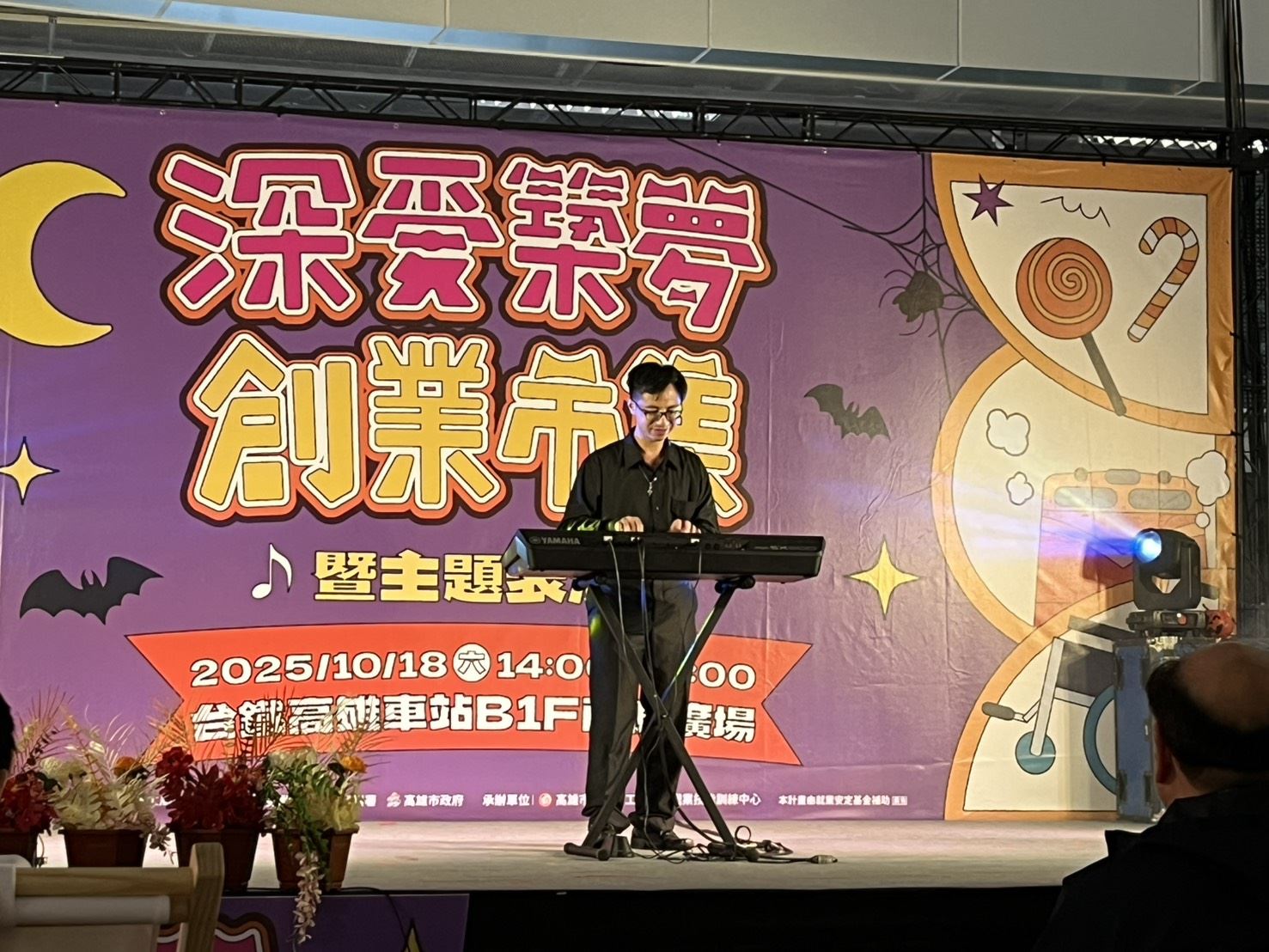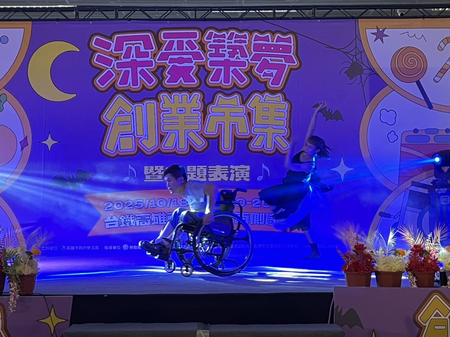 【高雄訊】高雄市勞工局為支持身心障礙者創業,今年陸續規劃舉辦多場身心障礙創業市集活動,最終壓軸場於(18)日下午,在台鐵高雄火車站地下一樓南側廣場盛大登場,除有身障朋友、社福團體所帶來的各式特色美食與文創攤位外,現場也安排幼兒萬聖節走秀、AirPods耳機摸彩活動、親子闖關體驗、動物園聯名手作皮件限量好禮、身障團體表演等多項免費好康活動可以參加與觀賞,吸引許多市民朋友大手牽小手到場熱情支持。現場由歡喜表演藝術團、崇光樂團、知星樂團及小百合樂團多組身障表演團體輪番演出,晚間主題表演更邀請國際知名十鼓擊樂團、星空鋼琴手李尚軒、視障歌手朱禹豪、滯留島舞蹈劇團帶來高水準的主題音樂會表演,讓民眾在逛市集的同時,也能共享盛大的音樂饗宴。
