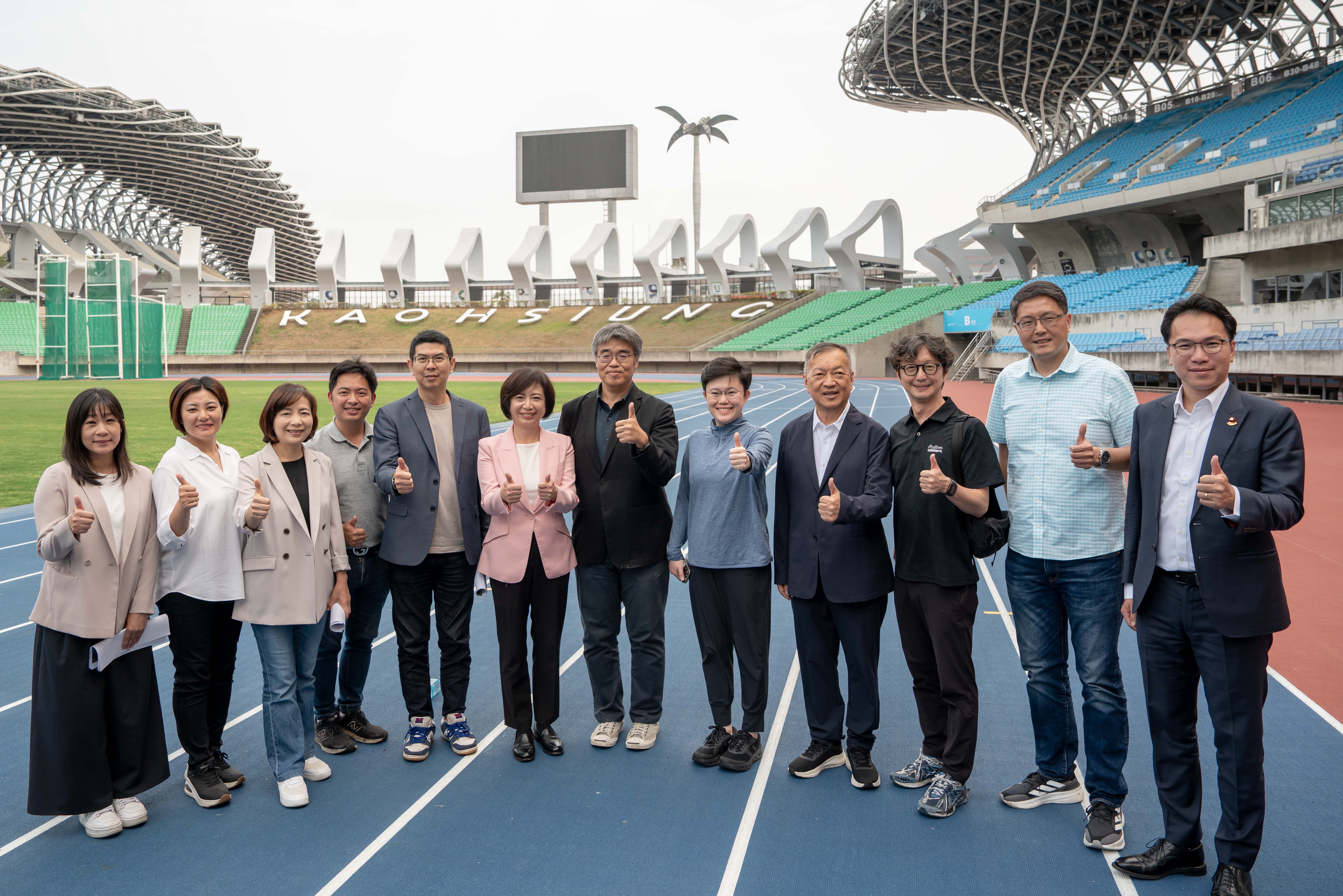 在聽取完各局處簡報後,由運發局帶領貴賓們參觀高雄國家體育場,體驗從應變中心觀看場館內的角度,並留下珍貴合影。