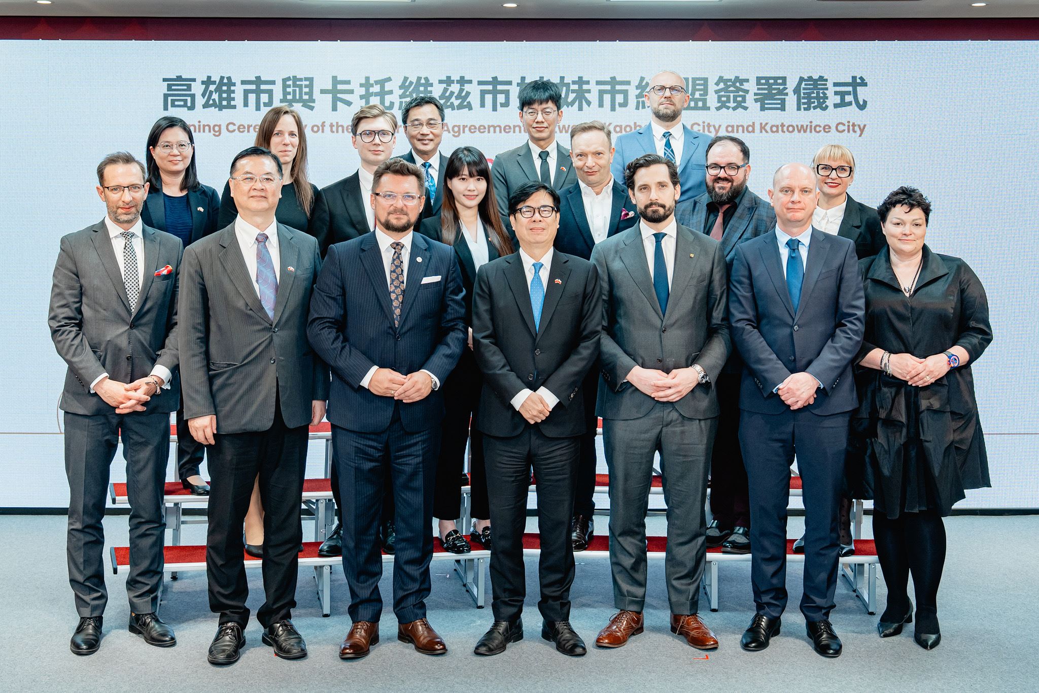 高雄再度迎來歐洲姊妹城市!波蘭卡托維茲市馬欽・克魯帕(Marcin Krupa)市長偕同博科夫斯基(Łukasz Borkowski)議長率團於20至23日訪問高雄,並於21日拜訪高雄市政府,與陳其邁市長共同簽署姊妹市協定,卡托維茲正式成為高雄締盟城市,為台波城市外交再添重要里程碑。波蘭臺北辦事處處長畢爾斯基(Janusz Bilski)亦到場見證,未來雙方將在智慧城市、產業轉型、教育交流及創新科技等領域深化合作。