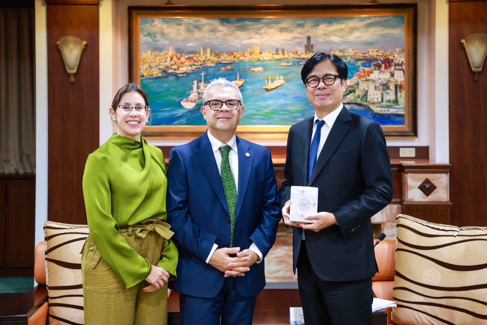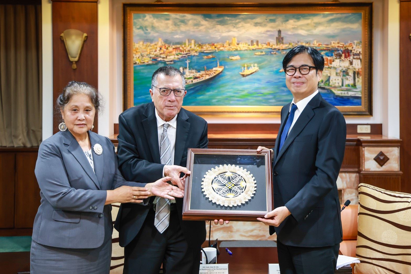 首度造訪高雄的斐濟塔拉吉尼吉尼大使對於高雄在永續發展與城市轉型的成果印象深刻,尤其美麗的高雄港更令他驚艷,期待未來斐濟能在港口發展上吸取高雄的經驗,促進多邊合作機會。陳其邁也指出,台灣與馬紹爾群島及斐濟同樣四面環海,皆面臨極端氣候挑戰,高雄積極推動淨零永續政策,期待持續深化與國際城市合作,共同面對全球挑戰,攜手共創更韌性永續的未來。