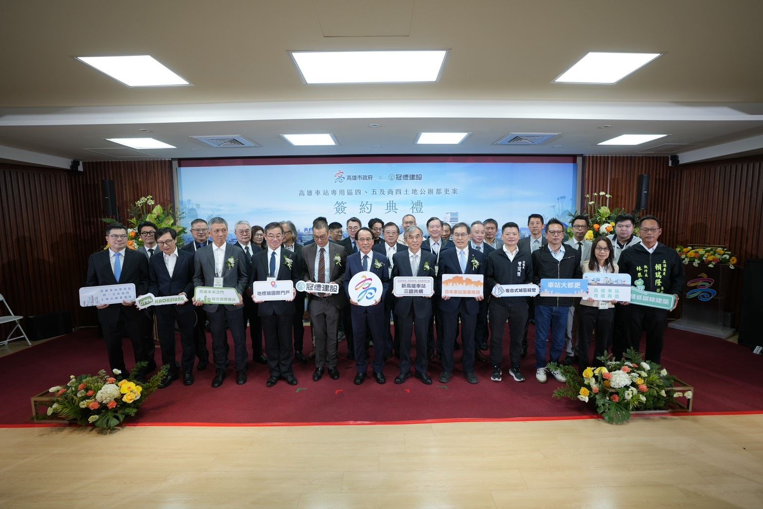 高雄市政府今(17)日舉行「高雄車站專用區四、五及商四公辦都市更新案」簽約典禮,由林欽榮副市長代表市府與最優申請人冠德建設股份有限公司簽署合作契約。本案總投資規模逾95億元,是高雄車站站前第一環圈重要的更新計畫,象徵車站周邊轉型正式啟動。配合高雄新車站天棚啟用及高鐵南延採行高雄方案,市長陳其邁宣布推動「高雄車站周邊大都更計畫」,以公辦都更結合TOD發展策略,打造具國際能見度的新世代城市中心。
