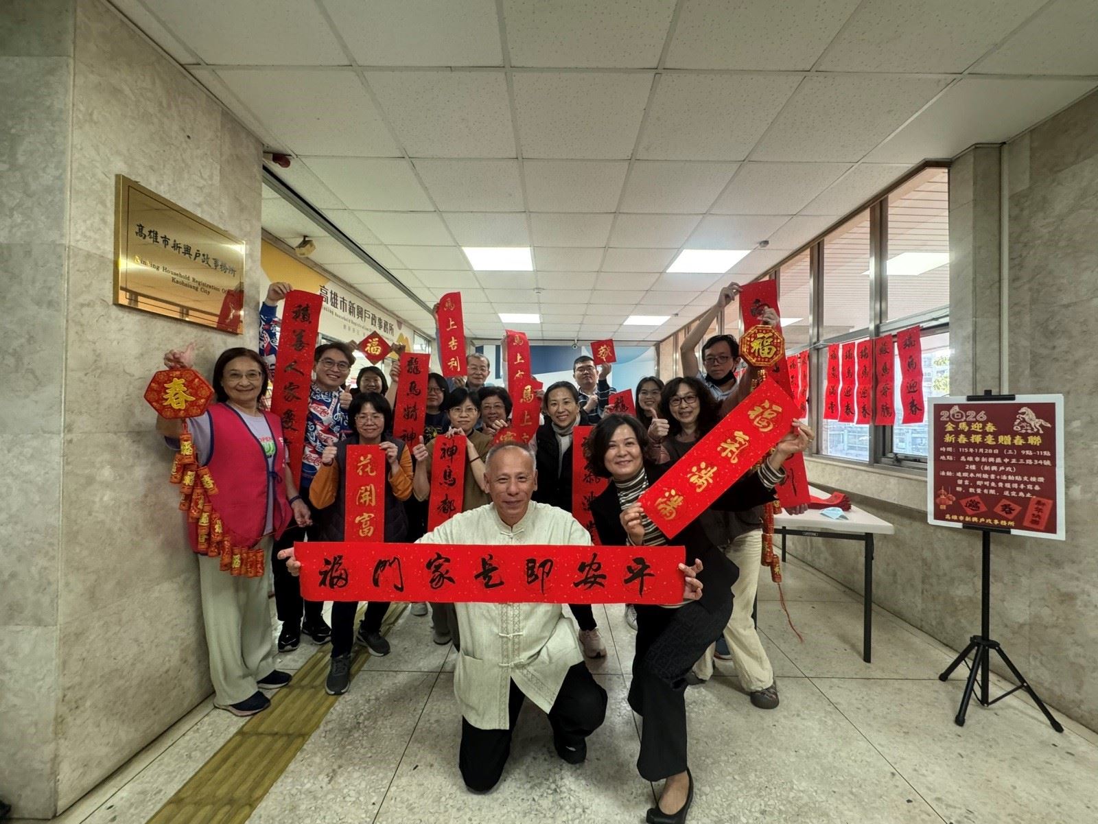 【高雄訊】為迎接農曆新年到來,新興戶政事務所於今(1月28日)舉辦「金馬迎春、送祝福」活動,延續去年佳評邀請高雄市中華書道學會總幹事、書法名家黃水源老師蒞臨現場揮毫,免費致贈手寫春聯,祝福民眾新的一年吉祥如意、好運連連,提前營造年節氣氛。