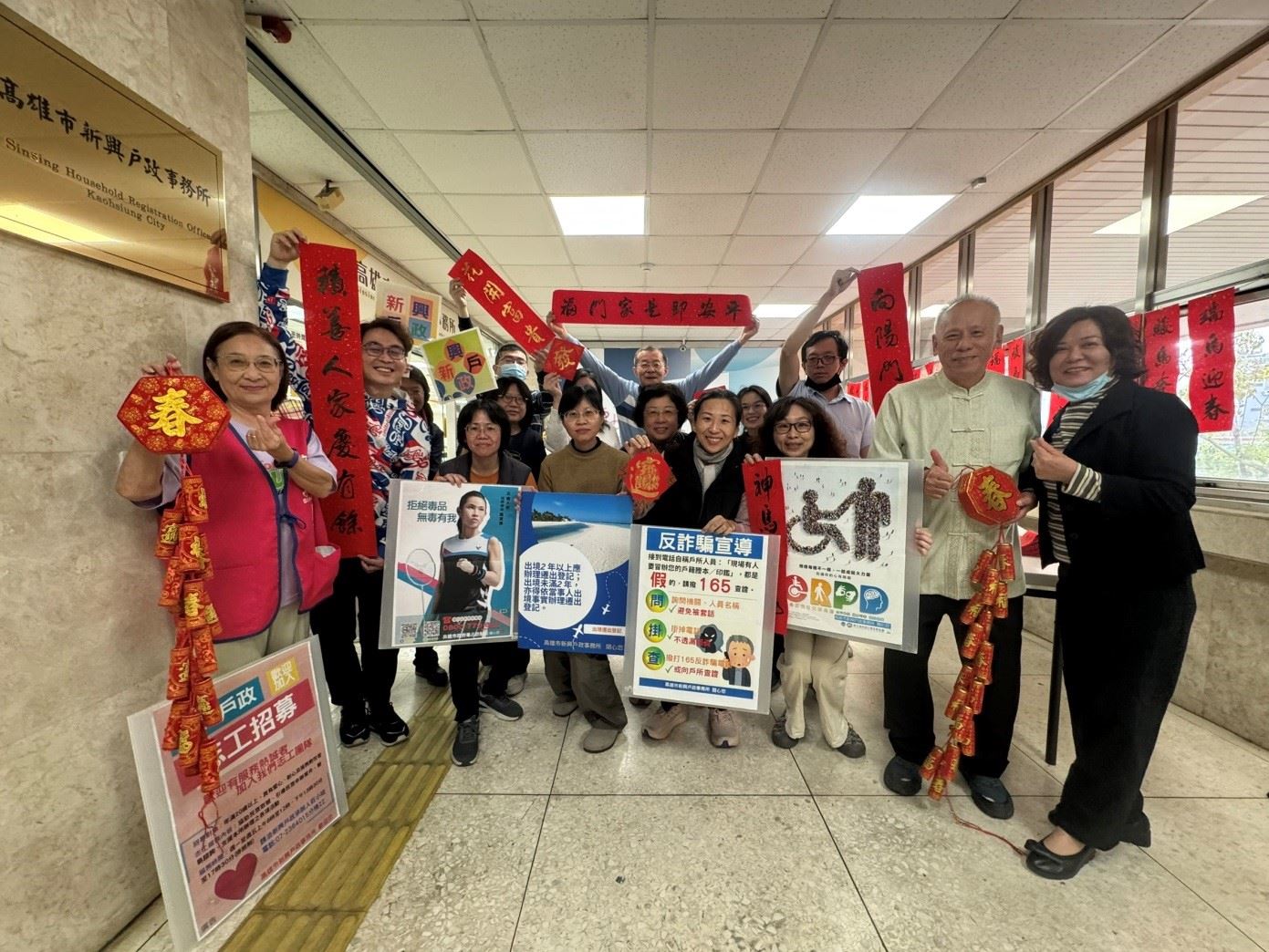 活動現場除提供多款春聯供民眾挑選外,新興戶政所也結合業務宣導,設置攤位向民眾宣達「防範詐騙」、「出境滿二年應辦理遷出登記」等重要戶政觀念,並同步辦理志工招募、宣傳「全民心理健康韌性計畫」、「身心障礙者權利公約」,讓民眾在欣賞書法藝術之餘,也能輕鬆吸收實用的資訊。