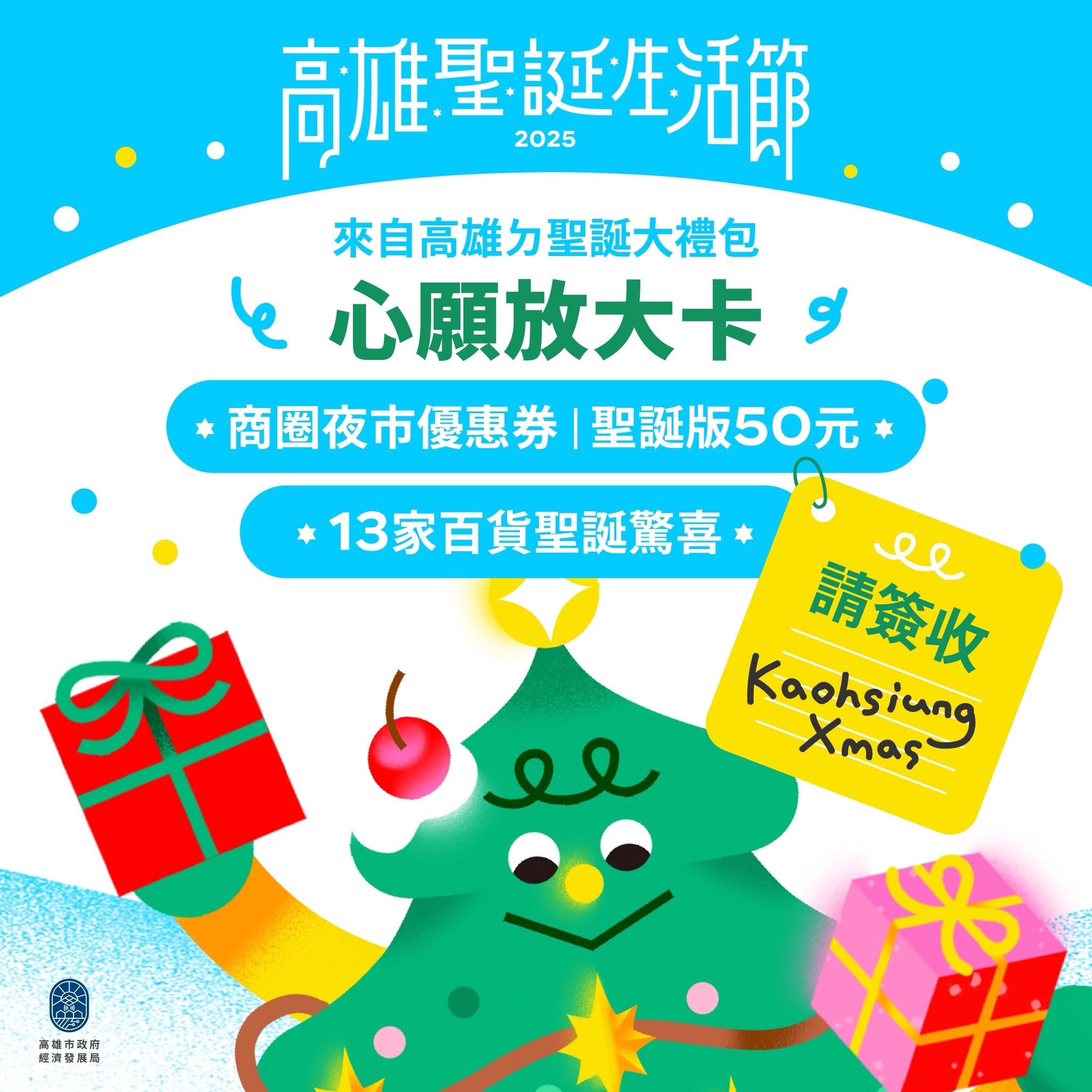 高雄聖誕生活節推出「心願放大卡」雙重回饋50元商圈夜市券及全市百貨聖誕驚喜