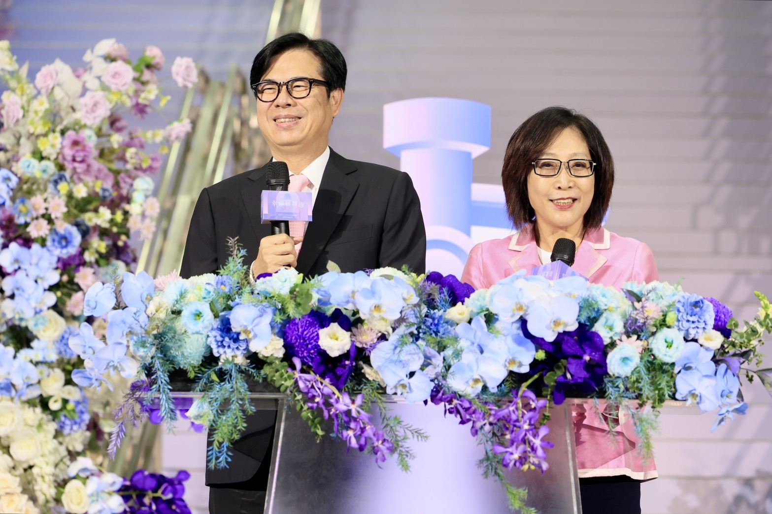 【高雄訊】高雄市114年市民集團婚禮今(9)日傍晚於高雄火車站浪漫登場,市長陳其邁與議長康裕成分別擔任主婚人與介紹人,見證115對新人幸福成家的時刻,祝福所有才子佳人百年好合、永浴愛河,共譜幸福圓舞曲,長長久久、幸福美滿。