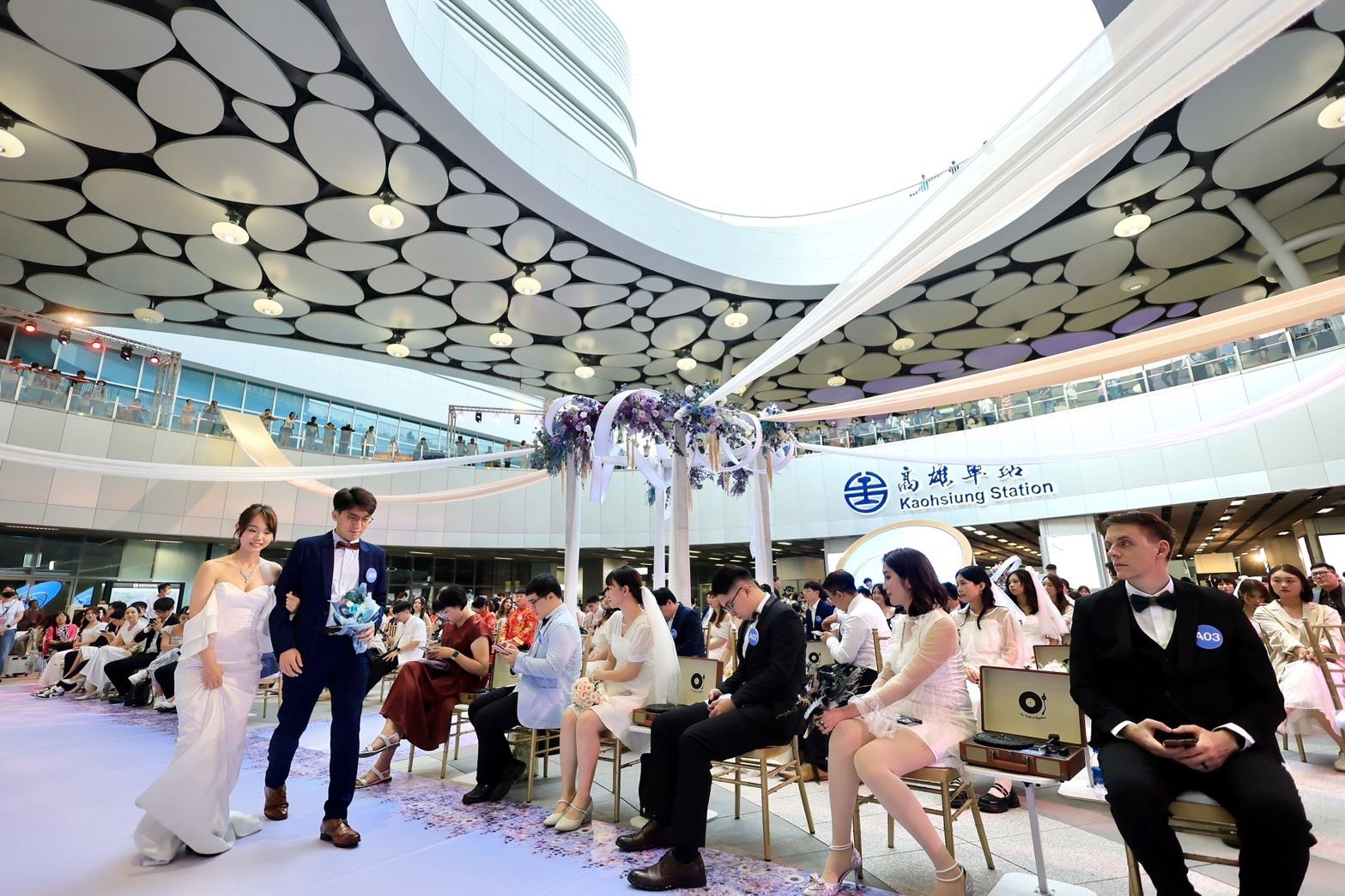 陳其邁致詞時恭喜新人們選擇高雄火車站作為婚姻的起點,他表示,結婚是幸福的起點,婚姻的終點同樣也是幸福。雖然生活中不見得每天都有甜言蜜語,但只要彼此信賴、支持與包容,這就是愛情的真諦。