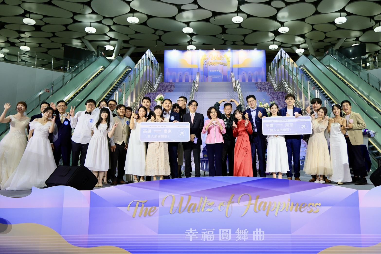 隨後,陳其邁與康裕成議長親手抽出多項大獎,除實用家電外,陳其邁更熱情加碼,一口氣新增10對新人高雄—東京雙人來回機票,現場歡聲雷動,中獎新人與親友雀躍不已,幸福與好運來得正是時候,氣氛熱烈達到最高潮。