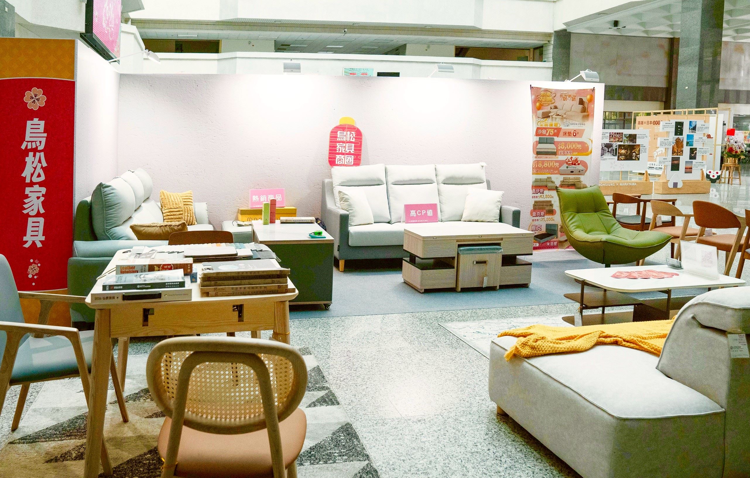本次商圈過好年特別於市府中庭設置家具街展區,由青年家具街商圈與鳥松家具街商圈共同展現家具。青年家具街商圈發展促進會理事長黃冠華表示,本次以「走出店面、聯合展示」概念,將各具特色的家具精品集結在市府展區,藉由有家的溫度展示,讓青年家具街不僅是採購地點,更是城市美學的提案者,現場更有互動遊戲,闖關後可獲得枕頭買一送一優惠券及家具折扣優惠等多項好禮,誠摯歡迎大家來『添購新意』,用一件好家具換一整年的好心情。鳥松家具街商圈發展促進會理事長吳宥霆表示,鳥松是全台知名的「家具一條街」,擁有款式最豐富的選擇與「量身訂做」的專業優勢,不論是多功能機能沙發或各式質感餐桌,都能滿足各種居家風格,本次展示主要放在最具溫度的團圓家具,期待家家戶戶都能「團圓幸福,馬上健康」。