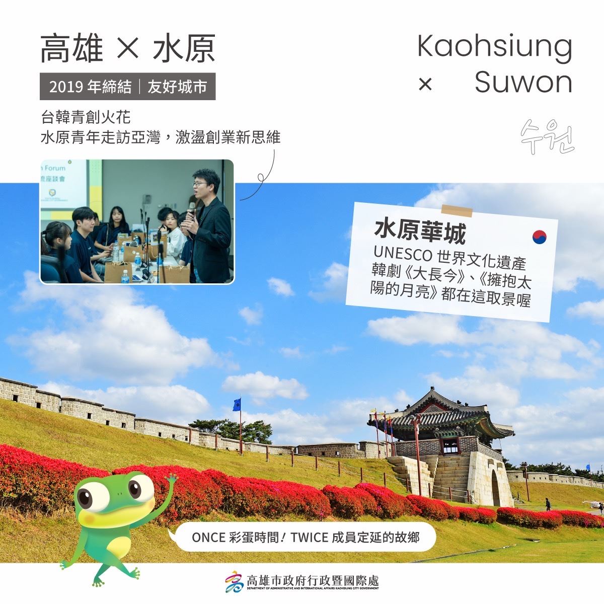 學校現場活動熱度爆棚!過埤國小學生大秀韓團熱舞,也踴躍分享對韓國印象,從 K-pop到韓劇,互動熱烈。英語老師更以全英語介紹韓國美食與文化、學生現場試穿韓服,以韓語互相打招呼,重現人氣韓劇《魷魚遊戲》中的「123 木頭人」橋段,笑聲不斷。更有學生驚呼:「原來 TWICE 的定延來自水原!水原也是高雄的友好城市!」驚喜發現追星也能牽起國際連結。