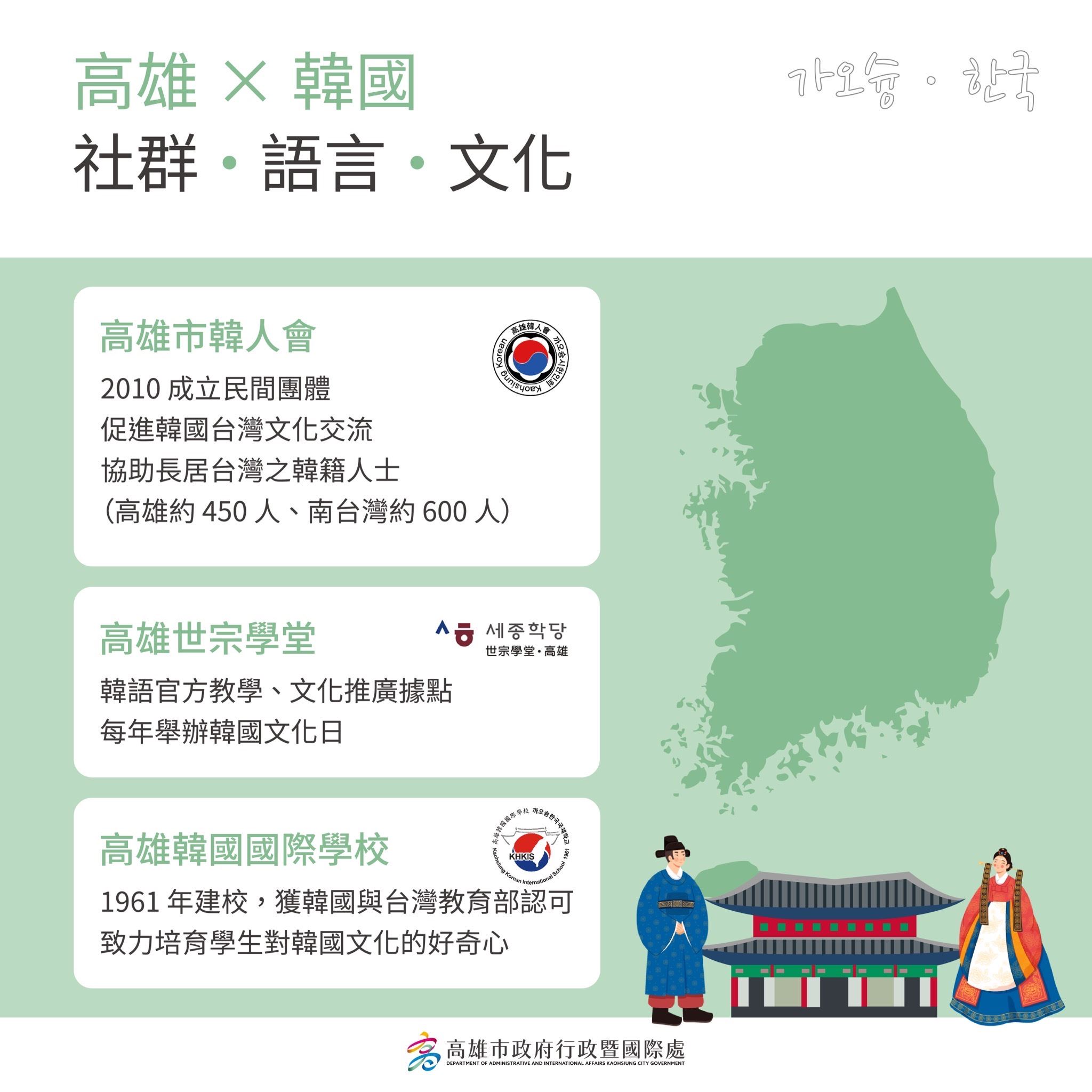 此外,本週末將登場的「韓國文化日」,由高雄市韓人會、高雄韓國國際學校及高雄世宗學堂共同主辦,透過韓語演說、歌唱與 K-pop 舞蹈競賽,展現年輕世代對韓國文化的熱情;同時與市府合作,共同宣傳高雄與韓國城市的互動。張硯卿表示,高雄不只是演唱會之都,更以城市角色積極走向國際,成為台韓文化交流的指標城市之一。