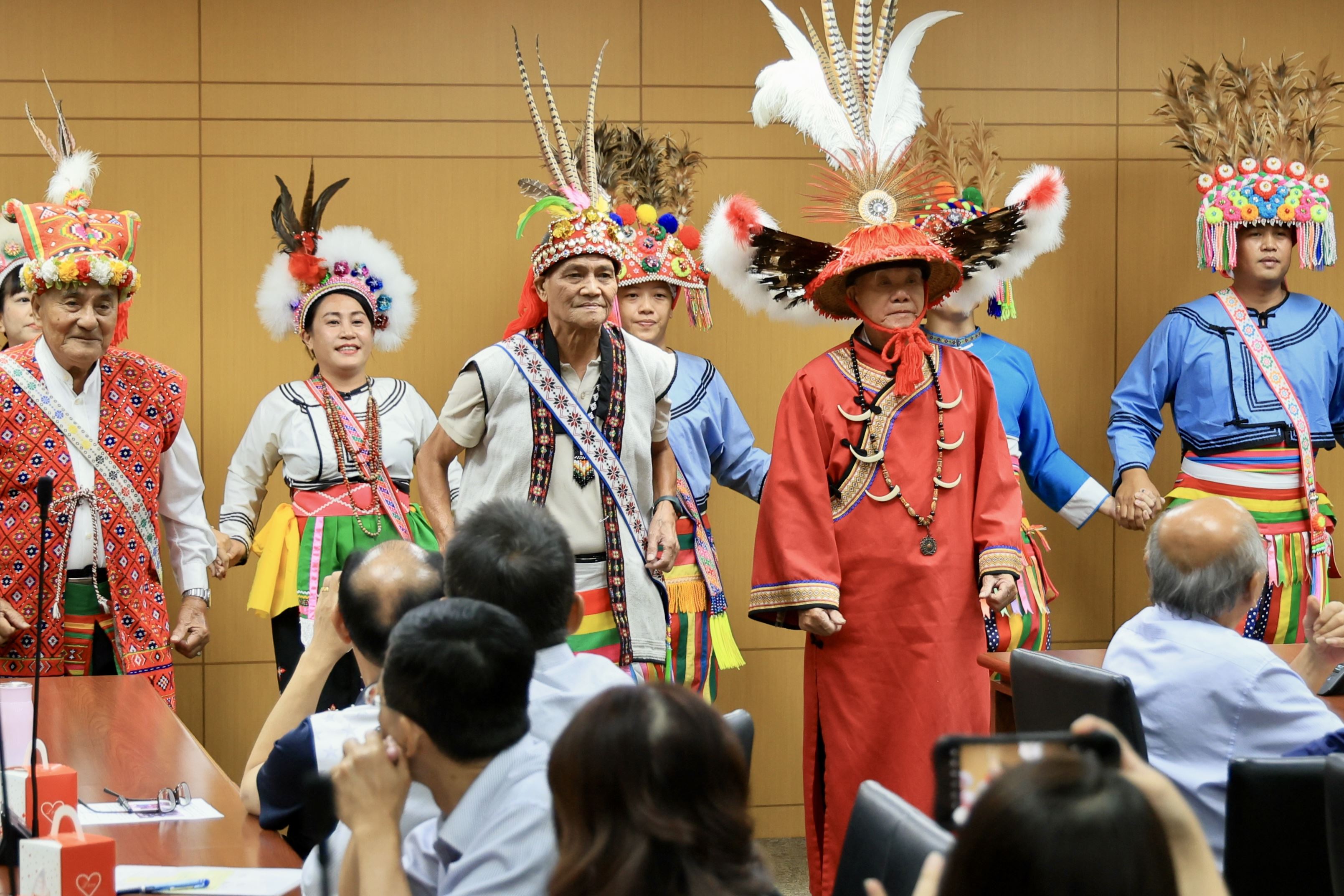 【高雄訊】2025年TAKAO豐潮系列活動─高雄市原住民族聯合豐年節,將於11月8日至9日在衛武營都會公園登場。傳統領袖總頭目林信明今(4)日率領都會區傳統領袖代表等人,在市政會議上以阿美族「報信」儀式,致贈信物予陳其邁市長,誠摯邀請市府團隊及市民朋友共襄盛舉。陳其邁表示,豐潮活動結合傳統與創新,邀請民眾踴躍參與,一同體驗原住民族文化之美。