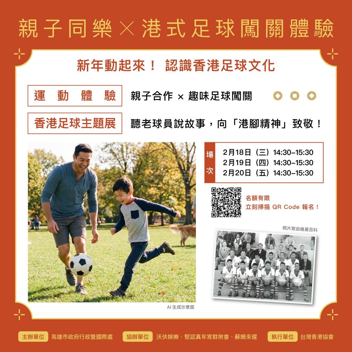 今年活動亦特別規劃親子足球工作坊,打造氣墊足球場,讓親子在互動闖關中體驗足球樂趣,同時認識香港足球文化。文化藝術方面,邀請香港藝術家林卓珈與多位藝術家進行跨界聯合創作,透過講座與導覽,帶領民眾深入理解作品內涵及背後的文化脈絡,展現多元香港文化。