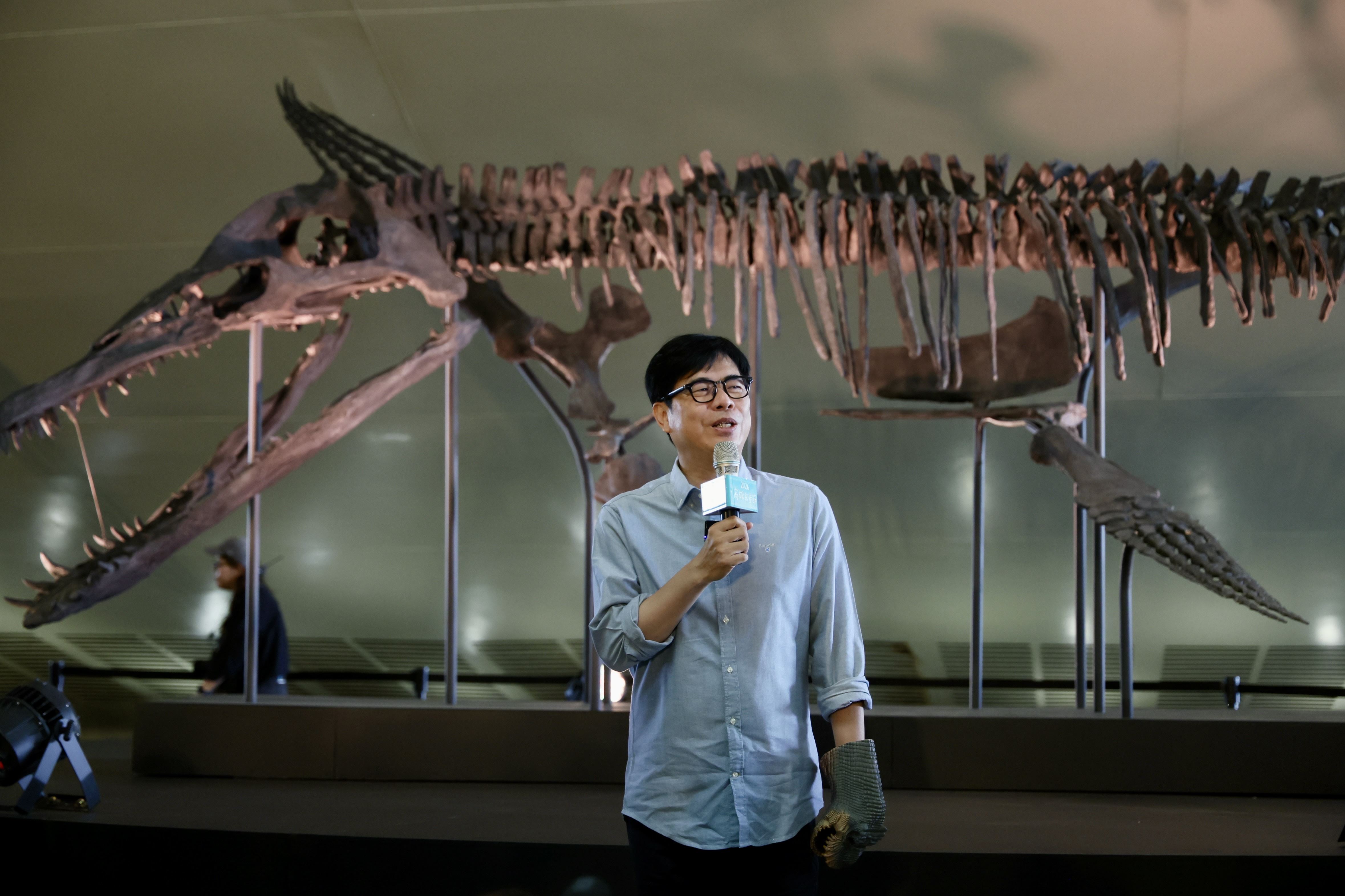 陳其邁表示,本次活動亮點為一比一擬真恐龍演出,透過生動展演與解說,帶領小朋友認識恐龍生存環境與演化歷程;現場亦安排MOMO家族同樂會、運動會及化石考古等多元活動,內容豐富,歡迎大小朋友在活動期間多次前來體驗。