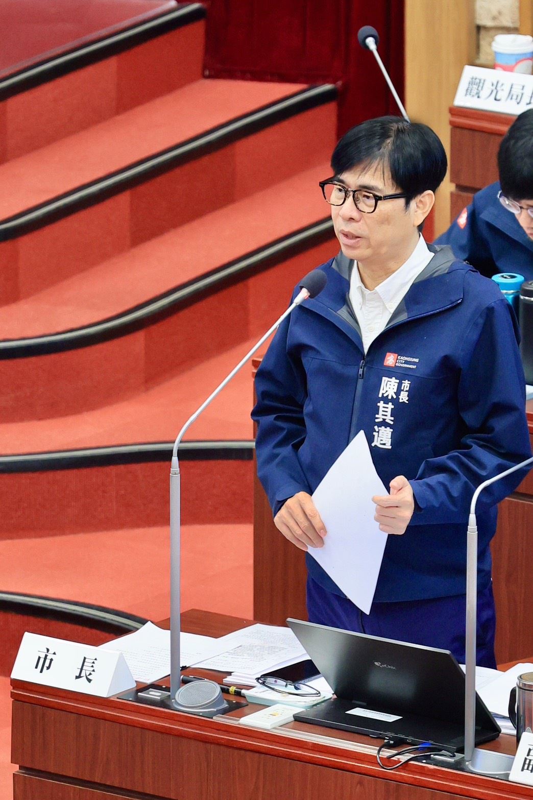 在捷運建設部分,議員關注大寮林園線規劃進度。陳其邁回應,捷運路網每十年需通盤檢討一次,目前正進行檢討作業,大寮林園線亦在檢討範圍內。大寮往北銜接大樹,未來也可與捷運紫線串聯。他強調,捷運建設需遵循規劃、可行性評估及核定興建等程序,屬長期路網規劃的一環。