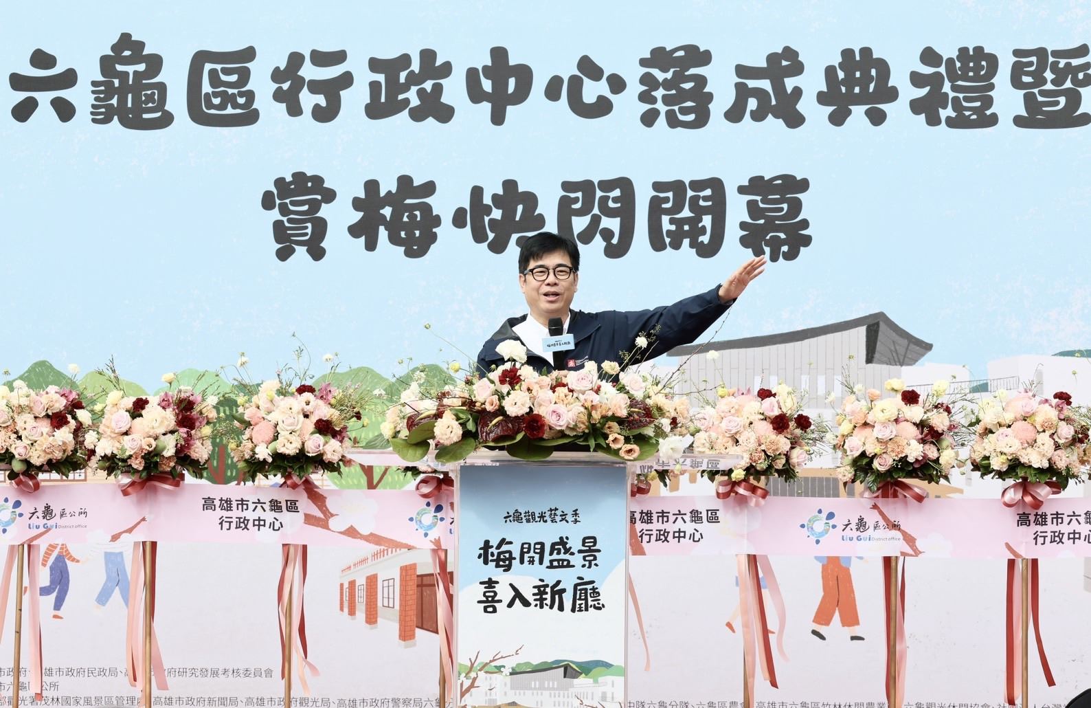 【高雄訊】高雄市六龜區行政中心今(16)日舉行落成典禮,並同步為「六龜賞梅活動」揭開序幕。市長陳其邁致詞時表示,整建工程總經費約3億7千萬元,3億元由市府編列,7千萬元由中央爭取補助,未來新行政中心除作為平時洽公場所,也以高標準防災規格設計,可在災害發生時提供居民安全收容空間,同時規劃音樂教室與禮堂,支持六龜優秀合唱團與學校音樂發展,凝聚在地文化與情感。