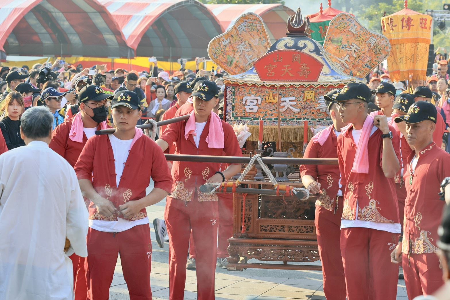 市長陳其邁親臨參香祈福,扶轎起駕恭迎媽祖聖駕巡安。他表示,此次白沙屯媽祖蒞臨高雄,與旗山天后宮、鳳山五甲龍成宮及岡山壽天宮媽祖一同駕臨岡山遶境賜福,是難得的重要宗教盛事,希望庇護高雄,也祈求國泰民安、風調雨順。
