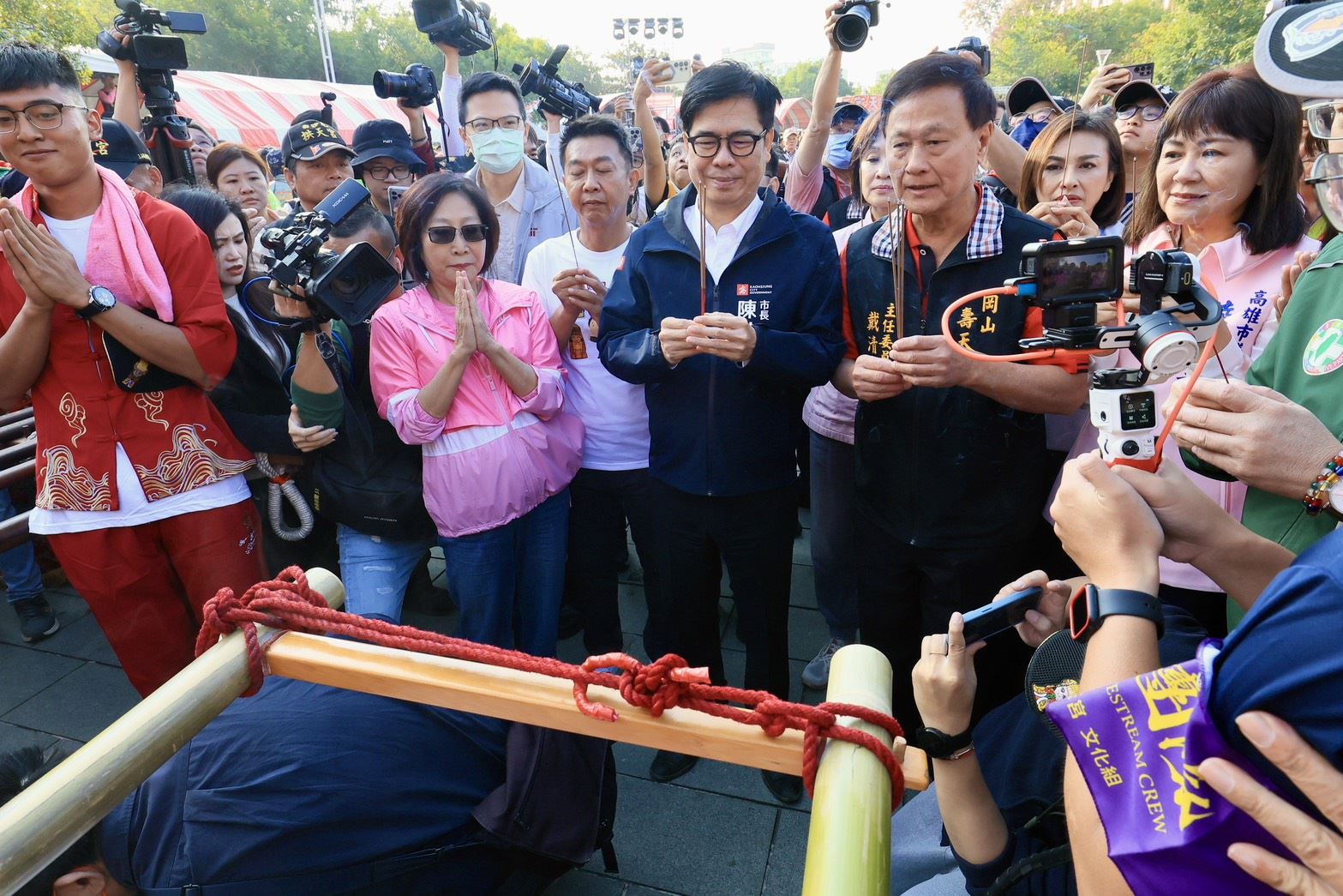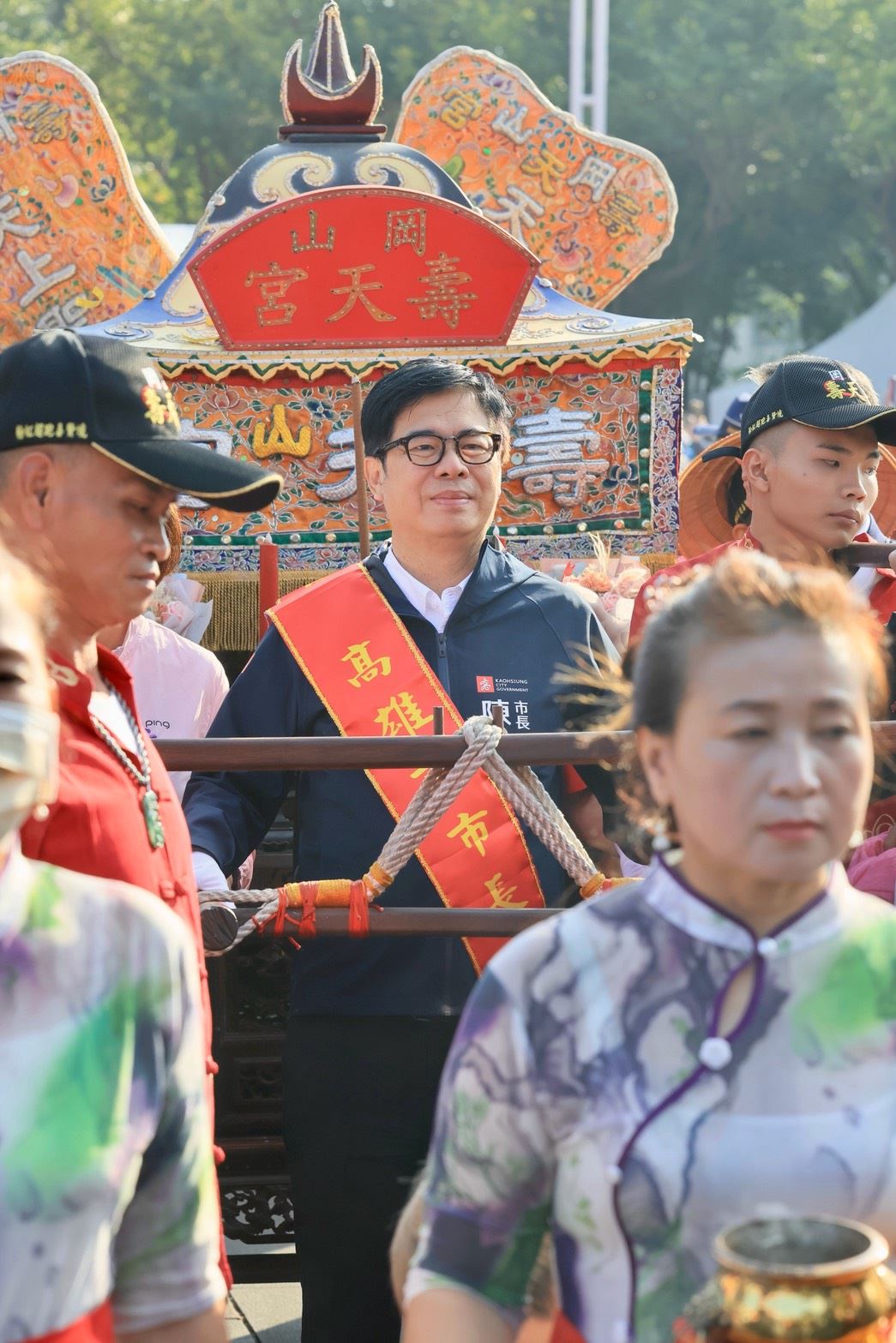 陳其邁指出,高雄市政府以大型演唱會規格全力支援,讓所有「媽祖粉絲」都能安心參與。市府也與廟方合作推出面額50元的「媽祖平安券」,串聯商圈與攤商,希望信眾在信仰巡禮中感受高雄的熱情,更能支持在地經濟。他強調,媽祖信仰是台灣珍貴文化資產,此次盛會凝聚信仰力量,也展現高雄宗教文化與觀光發展的雙重魅力。