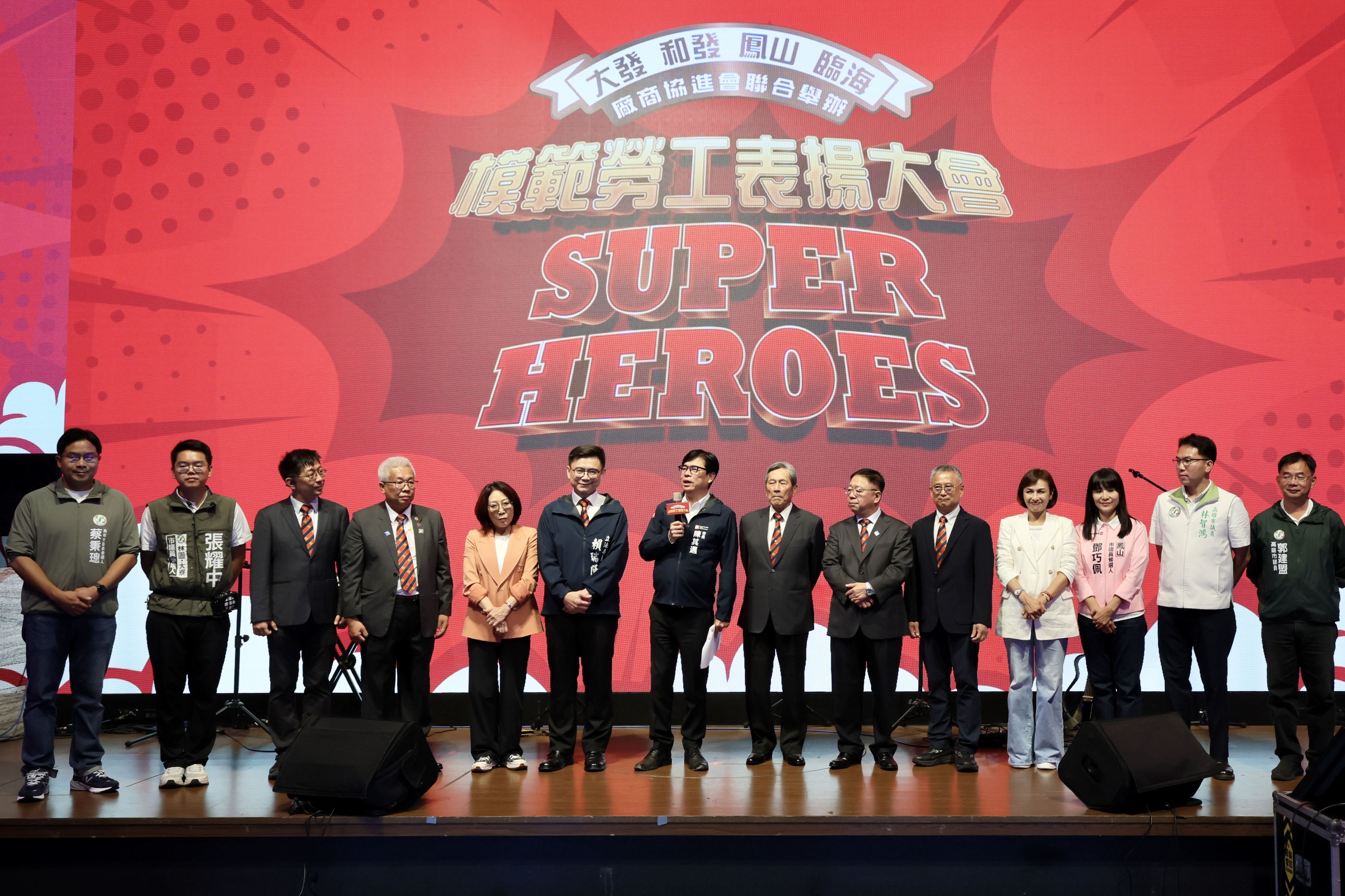 【高雄訊】為感謝勞工朋友對高雄經濟發展的投入與貢獻,高雄市長陳其邁今(24)日出席由大發、和發、鳳山及臨海四大產業園區廠商協進會首次聯合舉辦的模範勞工表揚大會,並親自頒獎表揚12名特殊貢獻獎得主,肯定其在職場上的卓越表現;活動中更現場獻唱歌曲〈你是我的兄弟〉,表達市府感謝勞工朋友辛勤付出,力挺高雄產業的決心。