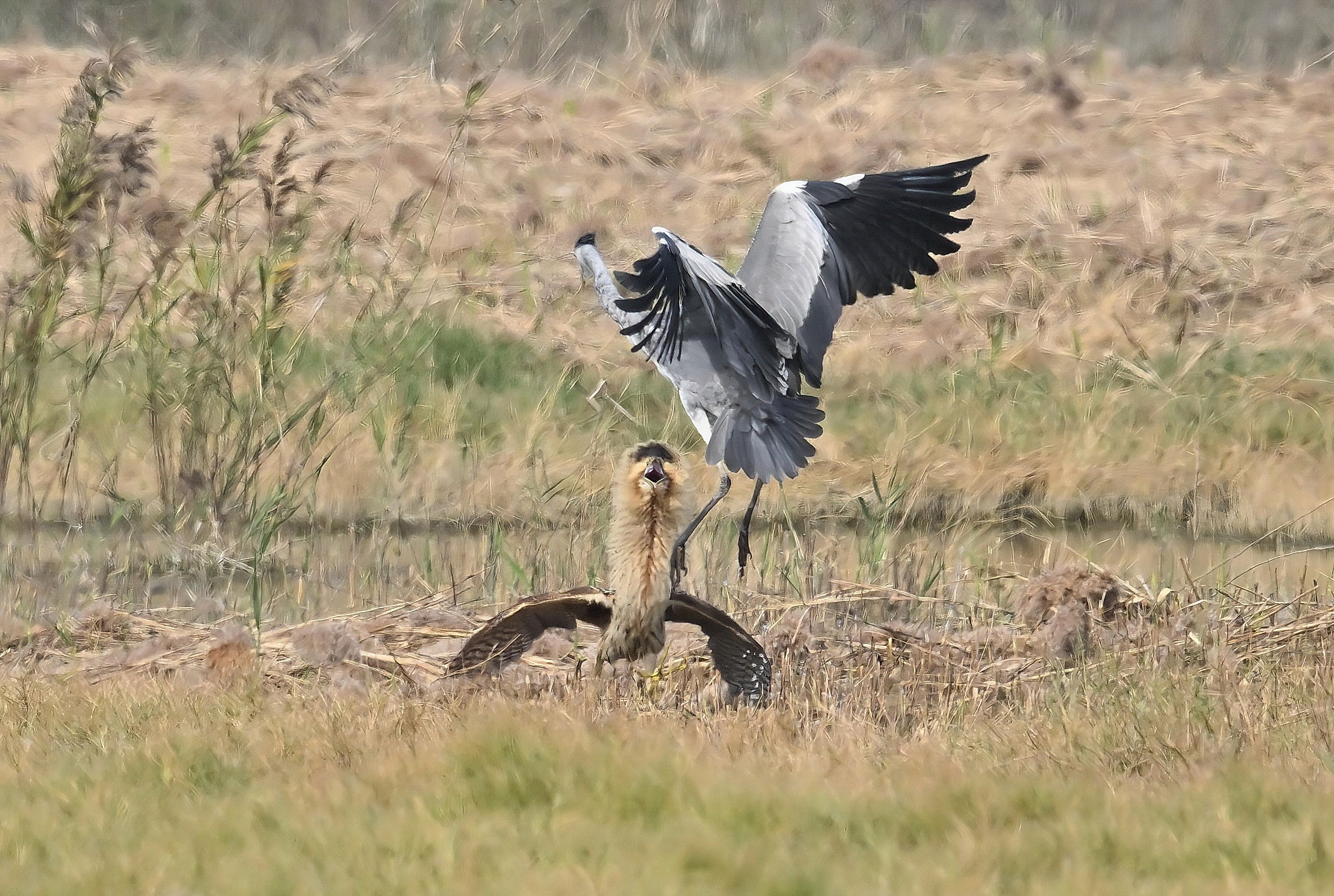 此次在茄萣濕地,大麻鷺不僅現身,還與常見的蒼鷺互動,甚至展現經典「警戒姿態」,成為現場鳥友搶拍的焦點。由於大麻鷺擅長隱身,能拍到清晰身影相當罕見,這次出現堪稱一場視覺盛宴。