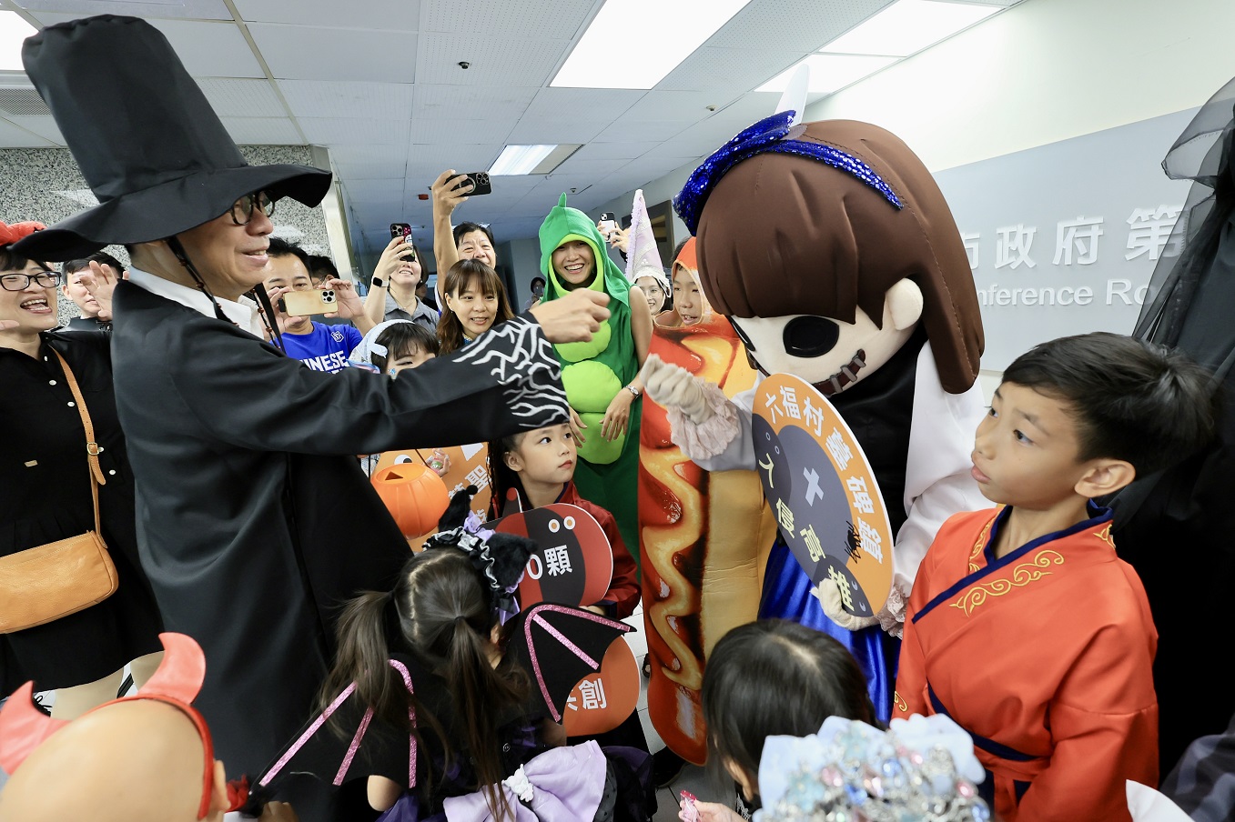 [Kaohsiung News] “Trick or treat!” Before the start of the municipal administrative meeting on Oct 21, children and parents dressed in creative Halloween costumes joyfully interacted with Mayor Chen Chi-mai, who appeared in a “Captain” costume inspired by a popular animated film. The lively encounter served as a sneak preview of the 2025 Kaohsiung Halloween, organized by the Kaohsiung City Government Education Bureau, to be held from October 31 to November 2 at the National Kaohsiung Center for the Arts (Weiwuying). Mayor Chen said the city government is making the best preparations to ensure this year’s event will be even more exciting and fun than before, adding that Weiwuying is the place to be for Halloween in Kaohsiung, and warmly invited families across Taiwan not to miss the festivities.
