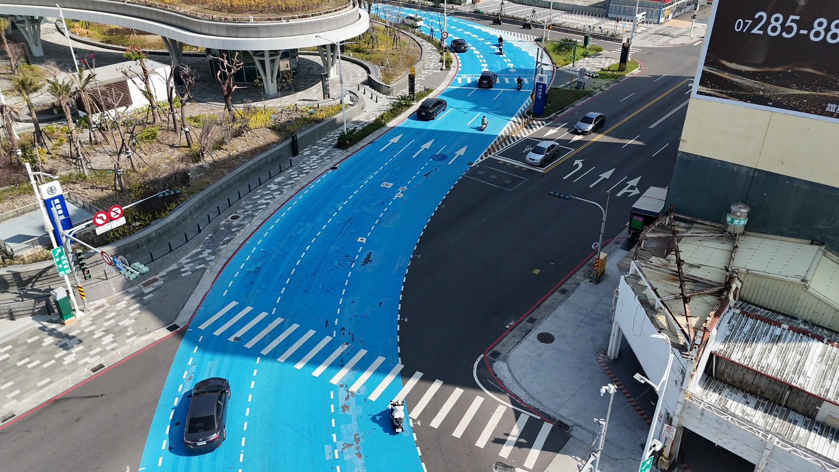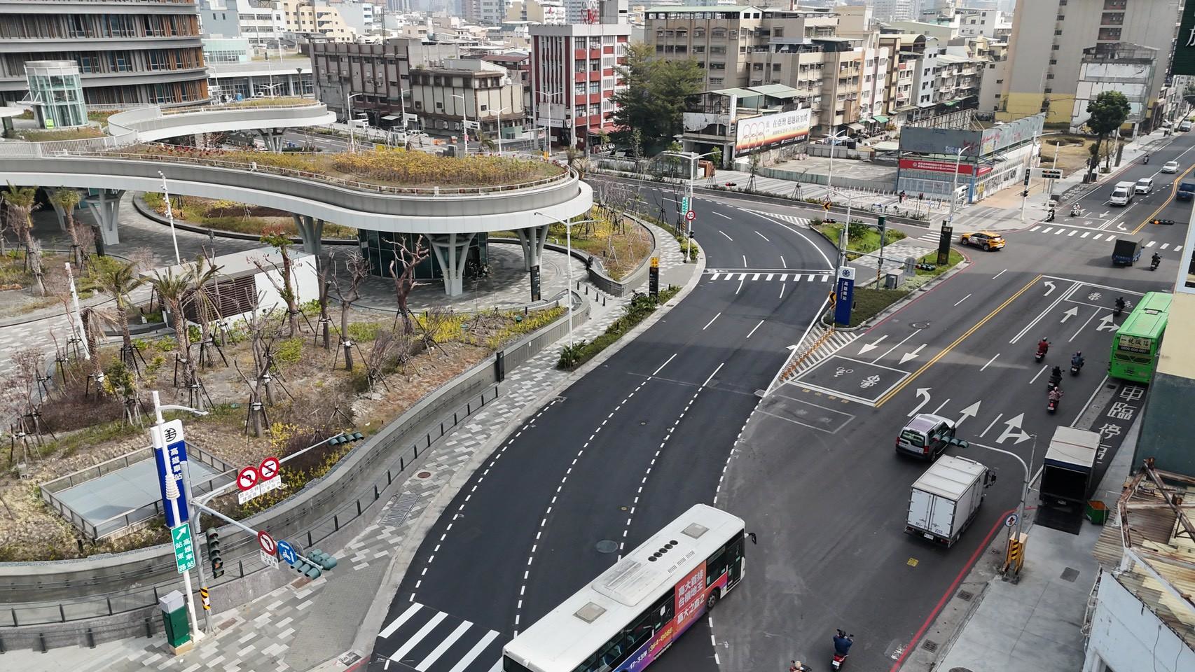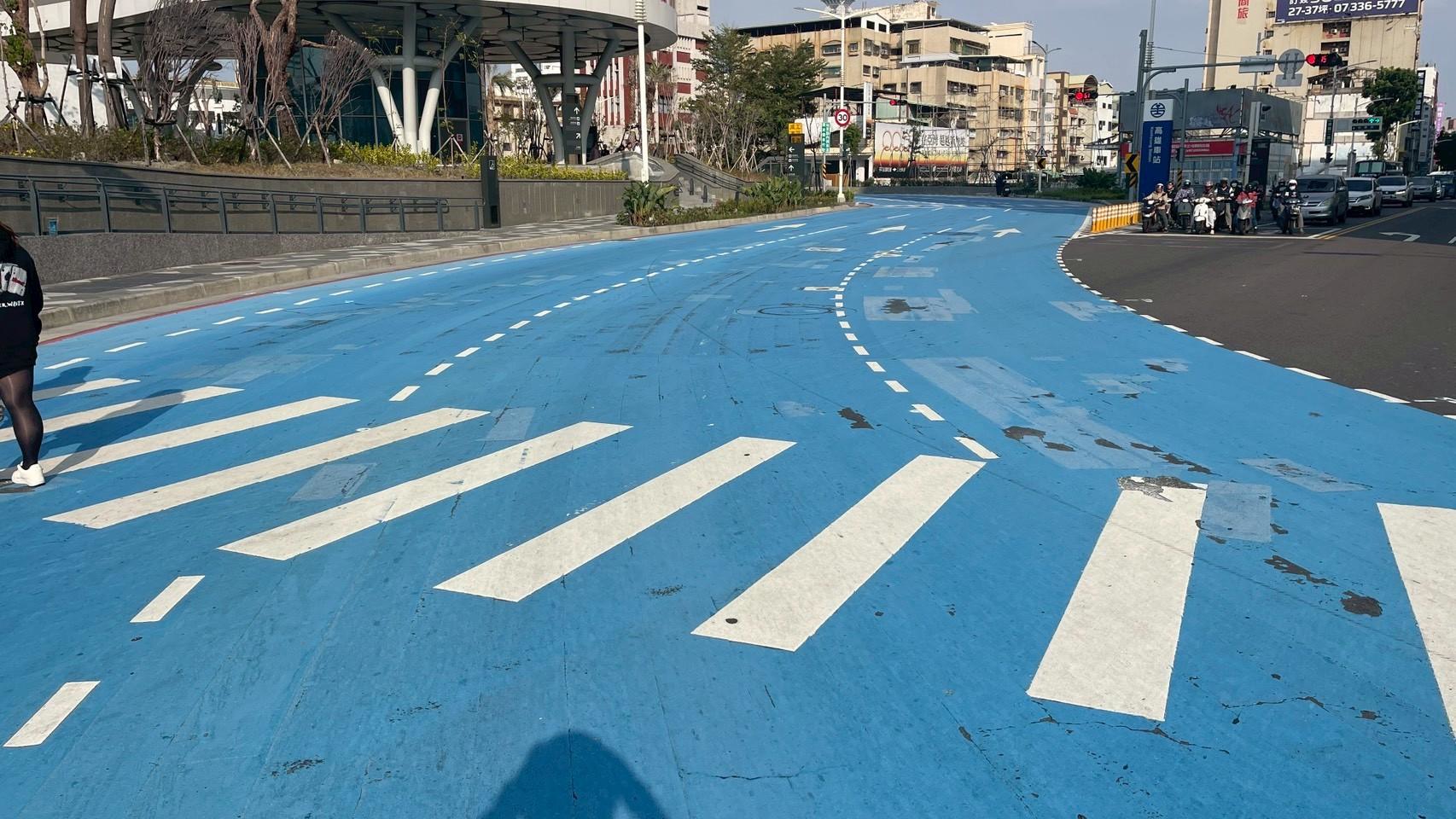 隨著帝冠式高雄車站回歸城市中線,車站兩側站東路及站西路形成環抱式路型,為提升車道辨識度與行車秩序,市府自112年起於此區導入彩色標線鋪面。工務局長楊欽富今(5)日指出,隨著用路人已逐漸適應站區路型,加上事故率明顯下降,彩色鋪面階段性任務已達成,今(115)年2月1日深夜完成全面更換為標準鋪面。
