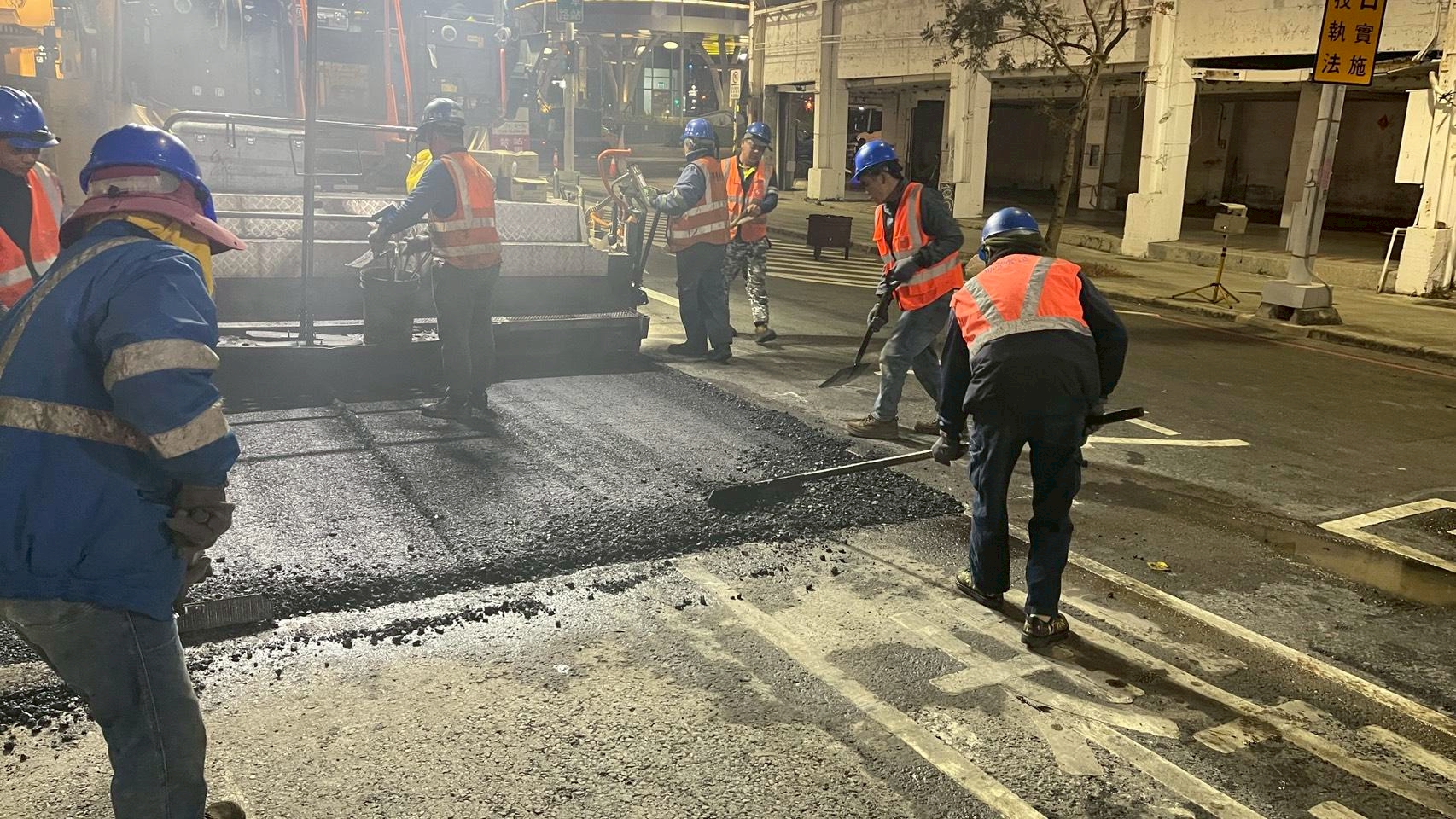 道工處補充,本次工程並與交通局、警察局協力合作,以夜間半半施工方式降低日常交通衝擊,於歲末年終之際為道路改頭換面,採用承載力與耐久性更佳的強韌材質換新鋪面,並重整加強交通動線與人本設計,不僅延長道路使用年限,妥善的交通引導規劃則能改善車流交織與突發衝突,路面更平順、用路更安穩。